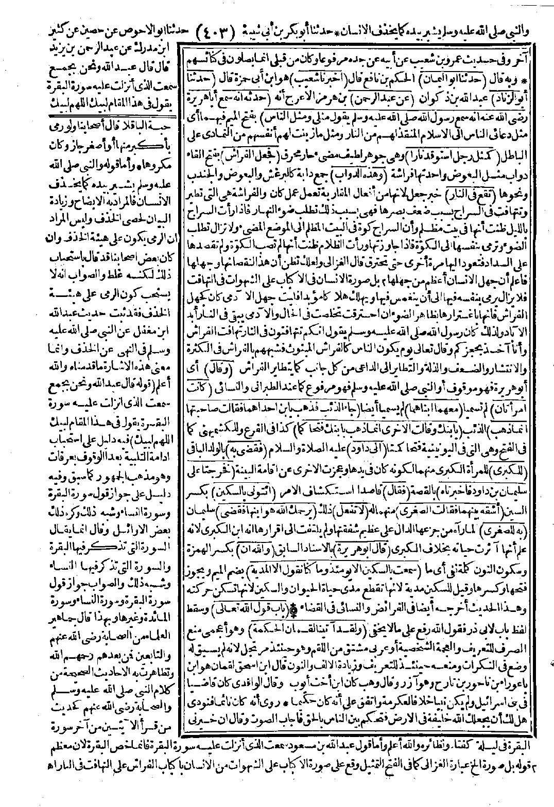 3426 - حَدَّثَنَا أَبُو الْيَمَانِ أَخْبَرَنَا شُعَيْبٌ حَدَّثَنَا أَبُو الزِّنَادِ عَنْ عَبْدِ الرَّحْمَنِ حَدَّثَهُ أَنَّهُ سَمِعَ أَبَا هُرَيْرَةَ -رضي الله عنه- أَنَّهُ سَمِعَ رَسُولَ اللَّهِ -صَلَّى اللَّهُ عَلَيْهِ وَسَلَّمَ- يَقُولُ: «مَثَلِي وَمَثَلُ النَّاسِ كَمَثَلِ رَجُلٍ اسْتَوْقَدَ نَارًا، فَجَعَلَ الْفَرَاشُ وَهَذِهِ الدَّوَابُّ تَقَعُ فِي النَّارِ».