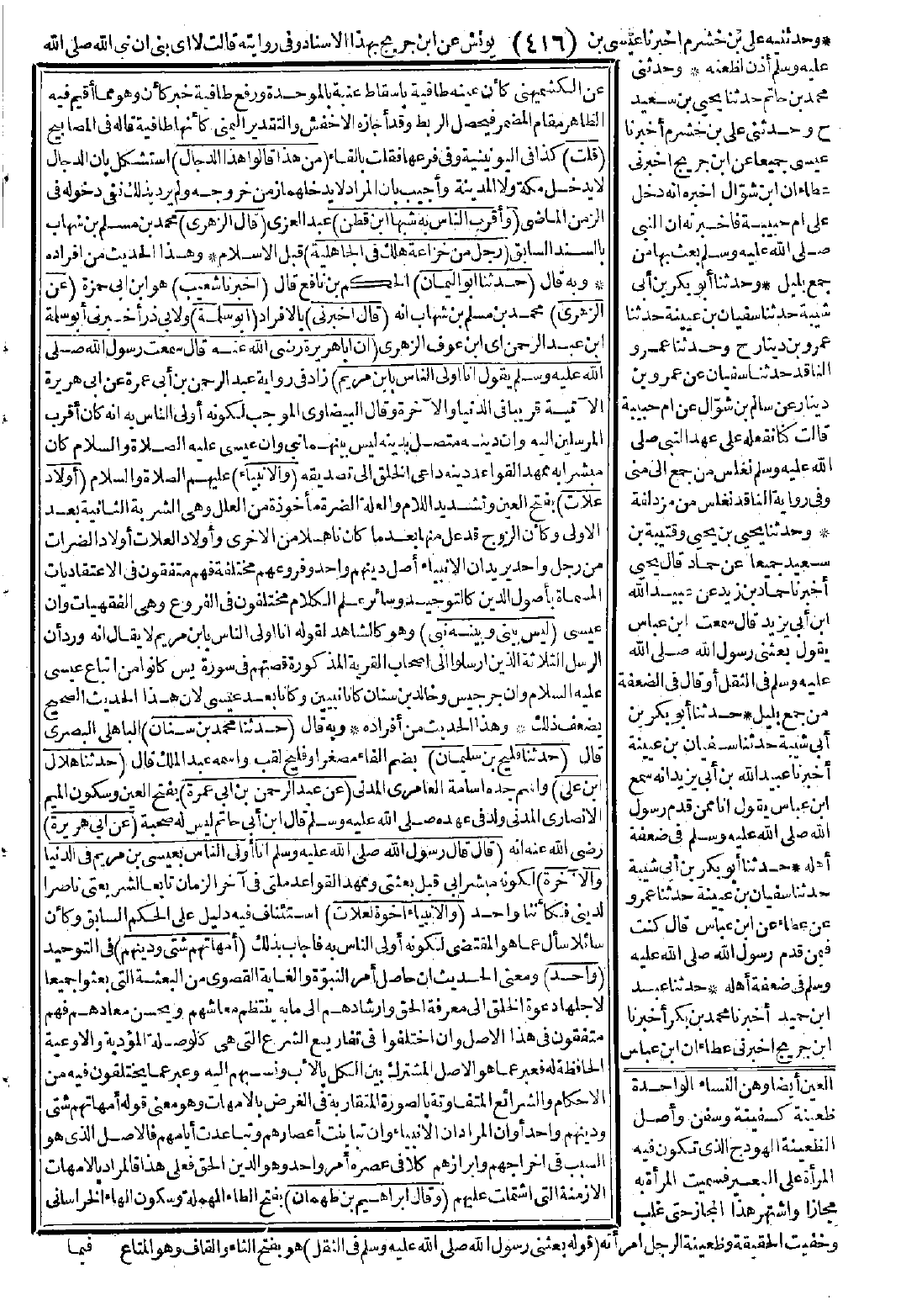 إليه وأنّ دينه متصل بدينه ليس بينهما نبيّ وأن عيسى عليه الصلاة والسلام كان مبشرًا به ممهدًا لقواعد دينه داعي الخلق إلى تصديقه. (والأنبياء) عليهم الصلاة والسلام (أولاد علاّت) بفتح العين وتشديد اللام. والعَلّة: الضرّة؛ مأخوذة من العلل وهي الشربة الثانية بعد الأولى، وكأن الزوج قد عَلَّ منها بعدما كان ناهلاً من الأخرى. وأولاد العلاّت: أولاد الضرّات من رجل واحد. يريد أن الأنبياء أصل دينهم واحد وفروعهم مختلفة، فهم متفقون في الاعتقاديات المسماة بأصول الدين كالتوحيد وسائر علم الكلام، مختلفون في الفروع وهي الفقهيات. وإن عيسى (ليس بيني وبينه نبيّ) وهو كالشاهد لقوله: "أنا أولى الناس بابن مريم". لا يقال إنه ورد أن الرسل الثلاثة الذين أرسلوا إلى أصحاب القرية المذكورة قصتهم في سورة يس كانوا من أتباع عيسى عليه السلام وأن جرجيس وخالد بن سنان كانا نبيين وكانا بعد عيسى؛ لأن هذا الحديث الصحيح يضعف ذلك.