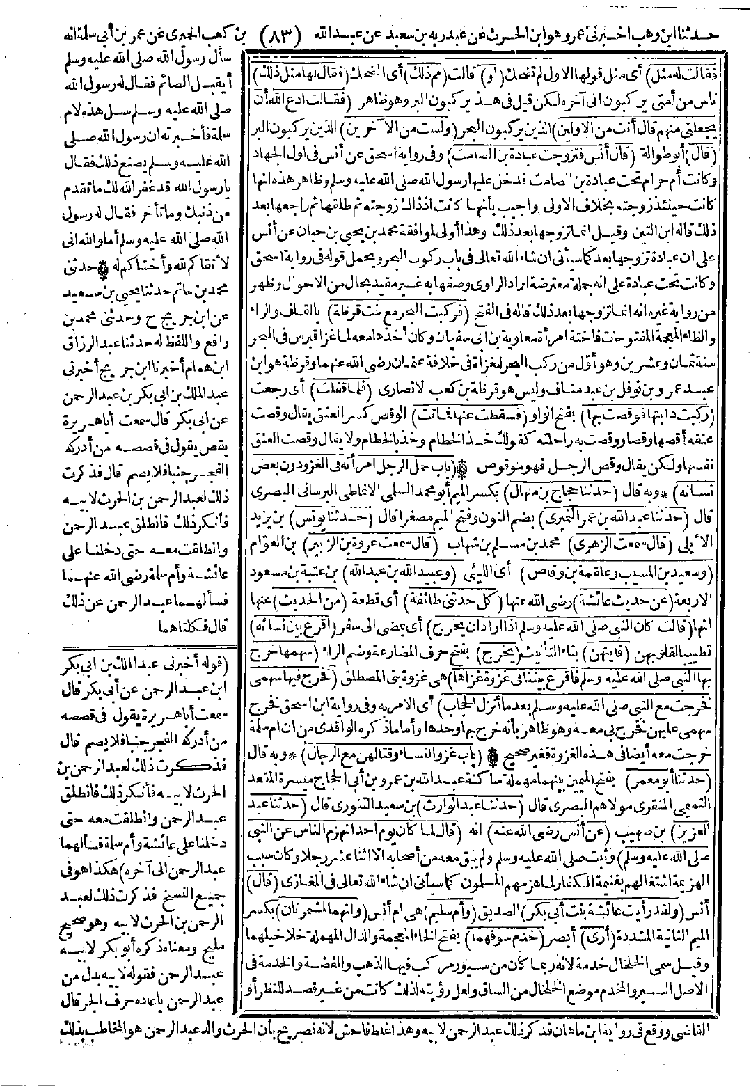عَبْدِ اللَّهِ عَنْ حَدِيثِ عَائِشَةَ، كُلٌّ حَدَّثَنِي طَائِفَةً مِنَ الْحَدِيثِ قَالَتْ: "كَانَ النَّبِيُّ -صَلَّى اللَّهُ عَلَيْهِ وَسَلَّمَ- إِذَا أَرَادَ أَنْ يَخْرُجَ أَقْرَعَ بَيْنَ نِسَائِهِ فَأَيَّتُهُنَّ يَخْرُجُ سَهْمُهَا خَرَجَ بِهَا النَّبِيُّ -صَلَّى اللَّهُ عَلَيْهِ وَسَلَّمَ-. فَأَقْرَعَ بَيْنَنَا فِي غَزْوَةٍ غَزَاهَا، فَخَرَجَ فِيهَا سَهْمِي. فَخَرَجْتُ مَعَ النَّبِيِّ -صَلَّى اللَّهُ عَلَيْهِ وَسَلَّمَ- قبلَ أن يَنزِلَ الْحِجَابُ".