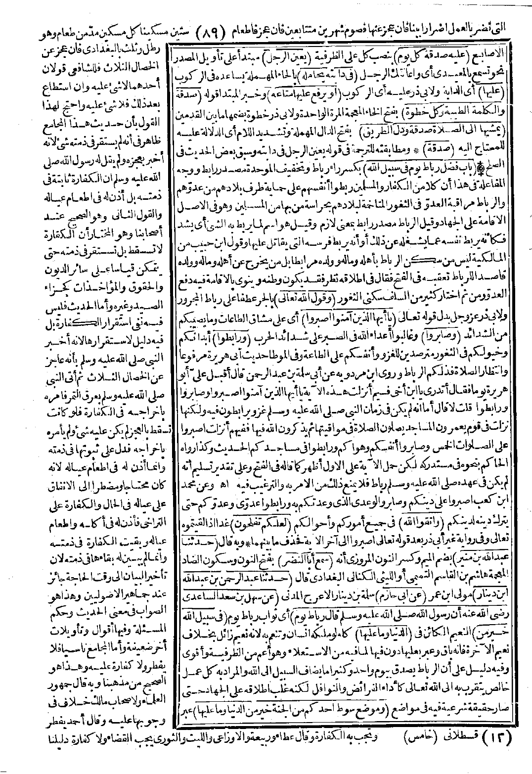 أنزلت هذه الآية {يا أيها الذين آمنوا اصبروا وصابروا ورابطوا} قلت: لا، قال: أما أنه لم يكن في زمان النبي -صَلَّى اللَّهُ عَلَيْهِ وَسَلَّمَ- غزو يرابطون فيه ولكنها نزلت في قوم يعمرون المساجد يصلون الصلاة في مواقيتها ثم يذكرون الله فيها ففيهم أنزلت. اصبروا على الصلوات الخمس وصابروا أنفسكم وهواكم ورابطوا في مساجدكم الحديث. وكذا رواه الحاكم بنحوه في مستدركه، لكن حمل الآية على الأول أظهر كما قاله في الفتح، وعلى تقديم تسليم أنه لم يكن في عهده -صَلَّى اللَّهُ عَلَيْهِ وَسَلَّمَ- رباط فلا يمنع ذلك من الأمر به والترغيب فيه اهـ.