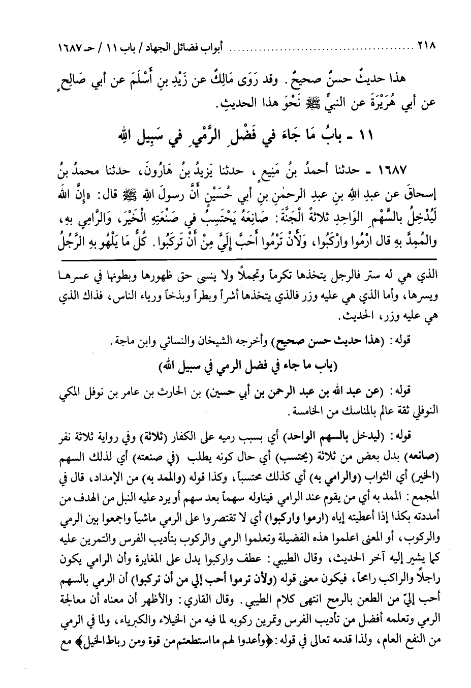 1 - (بَاب مَا جَاءَ فِي فَضْلِ الرَّمْيِ فِي سَبِيلِ اللَّهِ)
