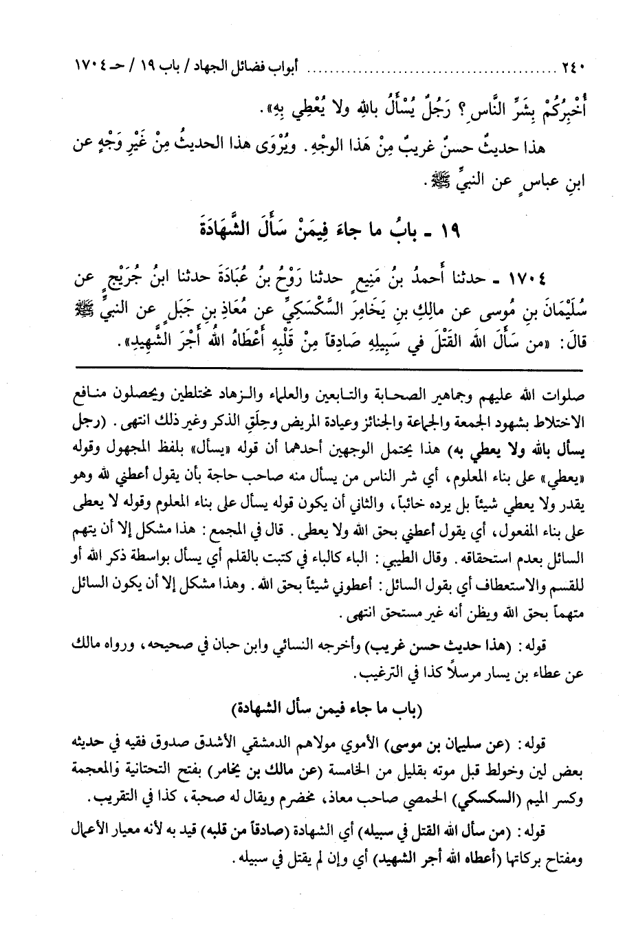9 - (بَاب ما جاء فيمن سأل الشهادة)