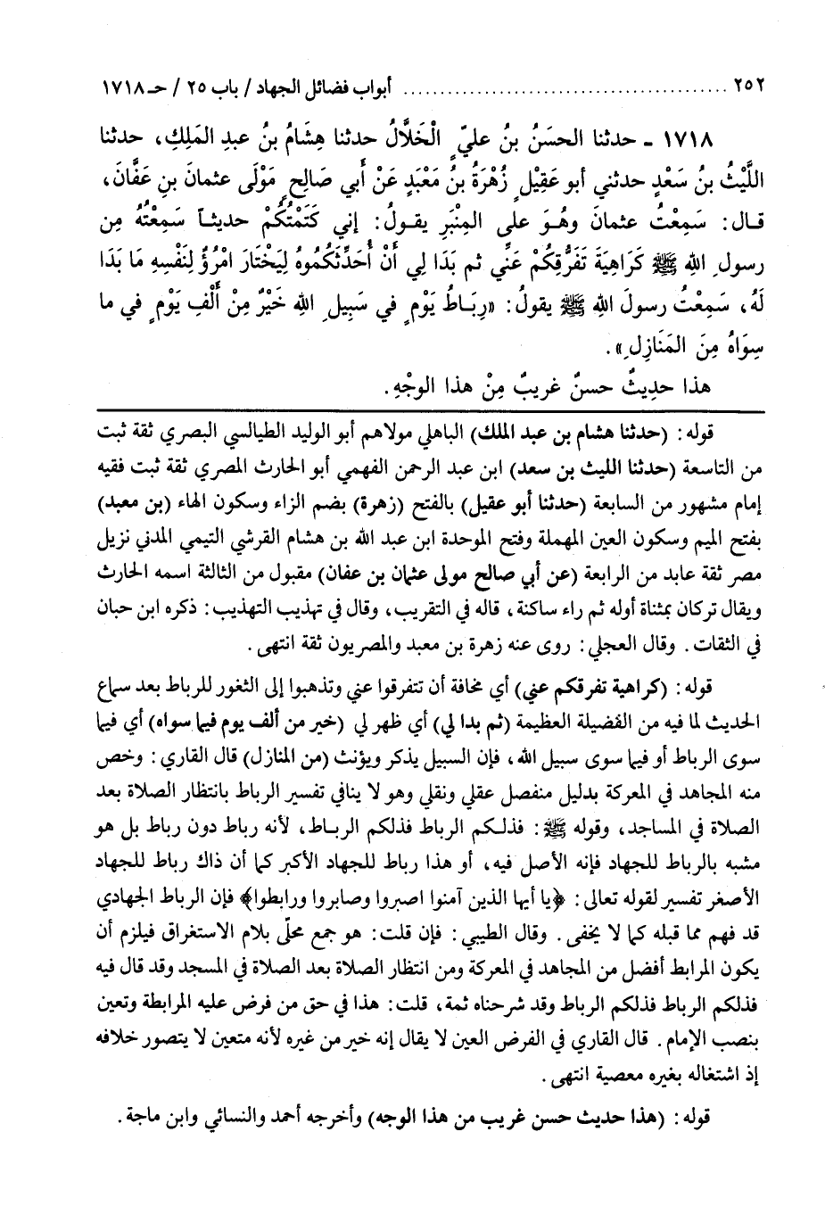 [1667] قَوْلُهُ (حَدَّثَنَا هِشَامُ بْنُ عَبْدِ الْمَلِكِ الْبَاهِلِيُّ) مَوْلَاهُمْ أَبُو الْوَلِيدِ الطَّيَالِسِيُّ الْبَصْرِيُّ ثِقَةٌ ثَبْتٌ من التاسعة (حدثنا الليث بن سعد) بن عَبْدِ الرَّحْمَنِ الْفَهْمِيُّ أَبُو الْحَارِثِ الْمِصْرِيُّ ثِقَةٌ ثَبْتٌ فَقِيهٌ إِمَامٌ مَشْهُورٌ مِنَ السَّابِعَةِ (حَدَّثَنِي أبو عقيل) بالفتح (زهرة) بضم الزاء وَسُكُونِ الْهَاءِ (بْنُ مَعْبَدٍ) بِفَتْحِ الْمِيمِ وَسُكُونِ العين المهملة وفتح الموحدة بن عَبْدِ اللَّهِ بْنِ هِشَامٍ الْقُرَشِيُّ التَّيْمِيُّ الْمَدَنِيُّ نَزِيلُ مِصْرَ ثِقَةٌ عَابِدٌ مِنَ الرَّابِعَةِ (عَنْ أَبِي صَالِحٍ مَوْلَى عُثْمَانَ بْنِ عَفَّانَ) مَقْبُولٌ مِنَ الثَّالِثَةِ اسْمُهُ الْحَارِثُ وَيُقَالُ تُرْكَانُ بِمُثَنَّاةٍ أَوَّلَهُ ثُمَّ رَاءٍ سَاكِنَةٍ قَالَهُ فِي التَّقْرِيبِ وَقَالَ فِي تَهْذِيبِ التَّهْذِيبِ ذكره بن حِبَّانَ فِي الثِّقَاتِ