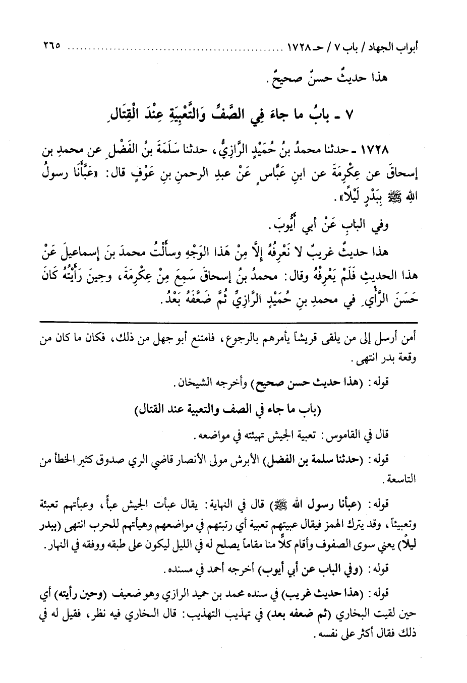 (باب مَا جَاءَ فِي الصَّفِّ والتَّعْبِيَةِ عِنْدَ الْقِتَالِ)