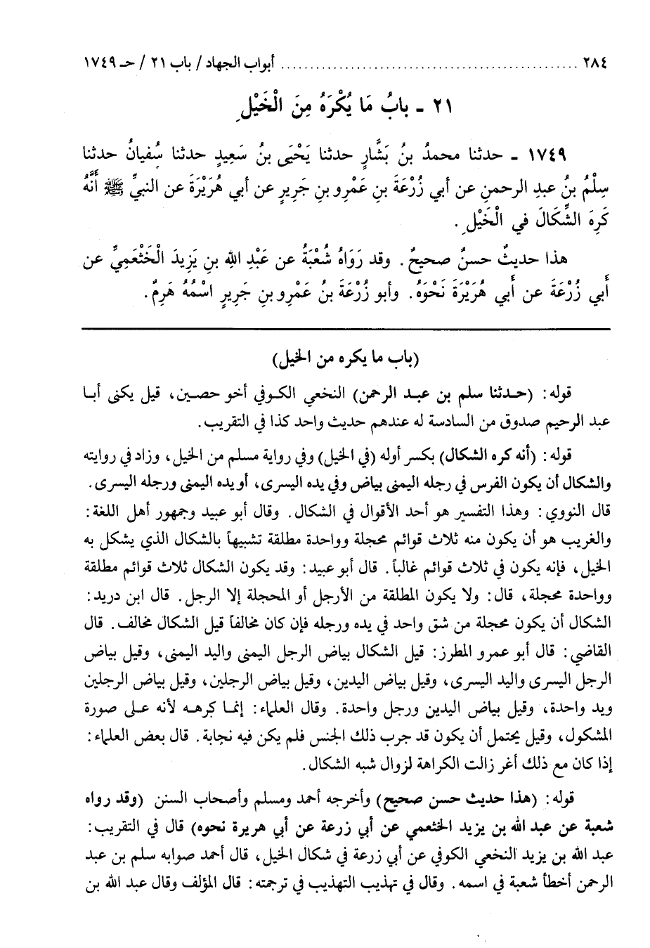 21 - (باب مَا يُكْرَهُ مِنْ الْخَيْلِ)