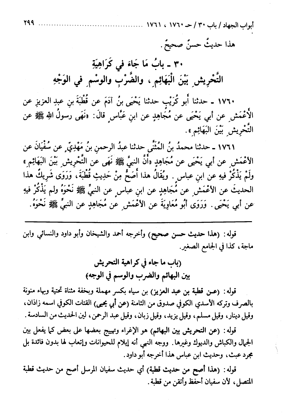 0 - (بَاب مَا جَاءَ فِي كَرَاهِيَةِ التَّحْرِيشِ بَيْنَ الْبَهَائِمِ وَالضَّرْبِ)