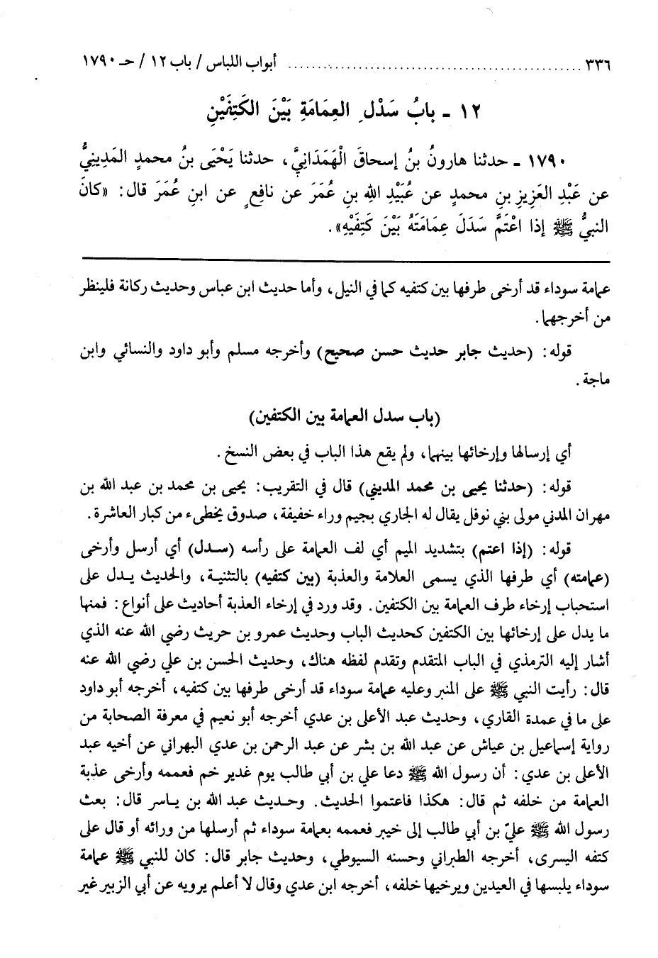 2 - (بَاب فِي سَدْلِ الْعِمَامَةِ بَيْنَ الْكَتِفَيْنِ)