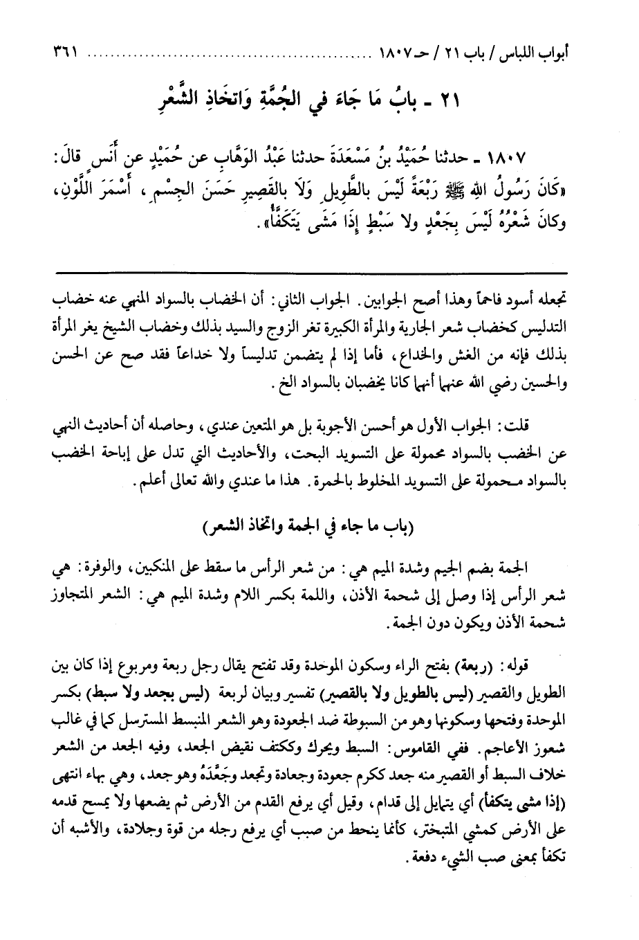 1 - (بَاب مَا جَاءَ فِي الْجُمَّةِ وَاتِّخَاذِ الشَّعْرِ الْجُمَّةُ)