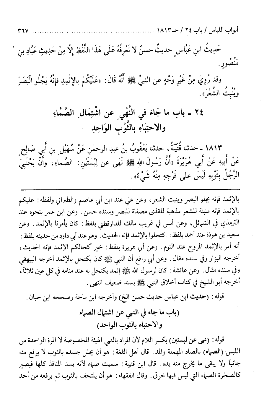 4 - (بَاب مَا جَاءَ فِي النَّهْيِ عَنْ اشْتِمَالِ الصَّمَّاءِ وَالِاحْتِبَاءِ)