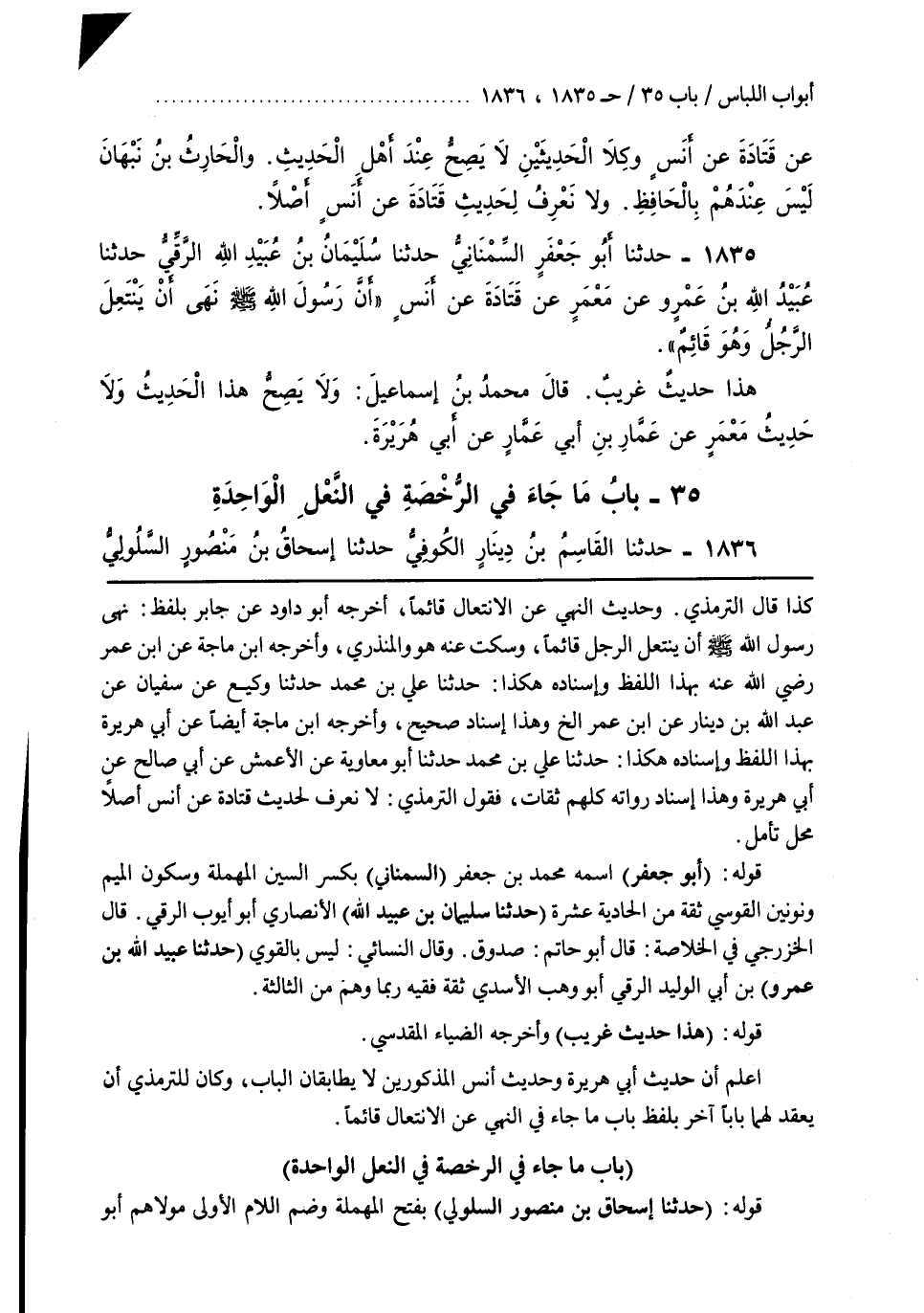 اعْلَمْ أَنَّ حَدِيثَ أَبِي هُرَيْرَةَ وَحَدِيثَ أَنَسٍ الْمَذْكُورَيْنِ لَا يُطَابِقَانِ الْبَابَ وَكَانَ لِلتِّرْمِذِيِّ أَنْ يَعْقِدَ لَهُمَا بَابًا آخَرَ بِلَفْظِ بَابُ مَا جَاءَ فِي النَّهْيِ عَنْ الِانْتِعَالِ قَائِمًا