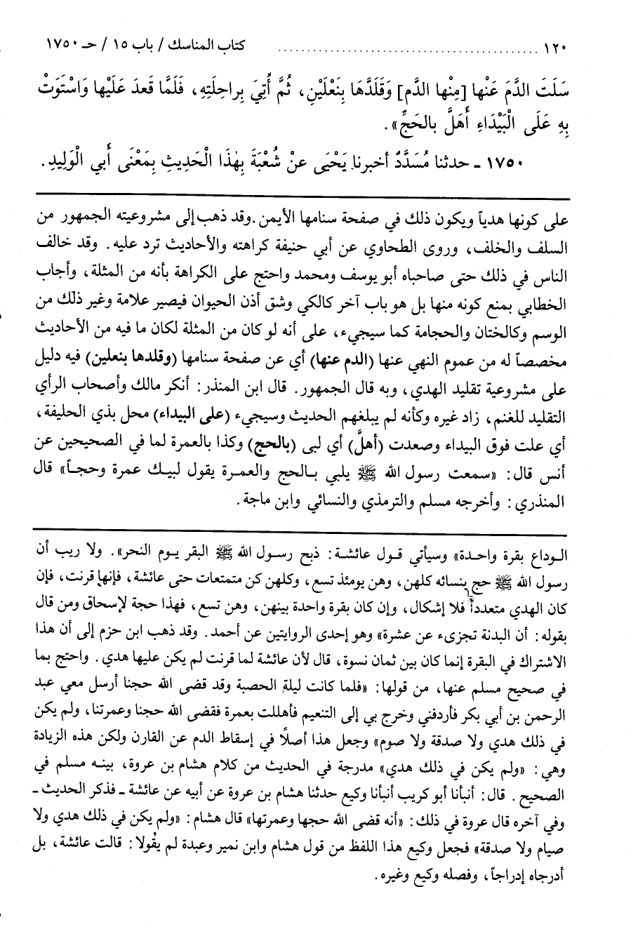 قال بن الْمُنْذِرِ أَنْكَرَ مَالِكٌ وَأَصْحَابُ الرَّأْيِ التَّقْلِيدَ لِلْغَنَمِ زَادَ غَيْرُهُ وَكَأَنَّهُ لَمْ يَبْلُغْهُمُ الْحَدِيثُ وَسَيَجِيءُ (عَلَى الْبَيْدَاءِ) مَحَلٌّ بِذِي الْحُلَيْفَةِ أَيْ عَلَتْ فَوْقَ الْبَيْدَاءِ وَصَعِدَتْ (أَهَلَّ) أَيْ لَبَّى (بِالْحَجِّ) وَكَذَا بِالْعُمْرَةِ لِمَا فِي الصَّحِيحَيْنِ عَنْ أَنَسٍ قَالَ سَمِعْتُ رَسُولَ اللَّهِ صَلَّى اللَّهُ عَلَيْهِ وَسَلَّمَ يُلَبِّي بِالْحَجِّ وَالْعُمْرَةِ يَقُولُ لَبَّيْكَ عُمْرَةً وَحَجًّا قَالَ الْمُنْذِرِيُّ وَأَخْرَجَهُ مُسْلِمٌ وَالتِّرْمِذِيُّ وَالنَّسَائِيُّ وبن ماجه