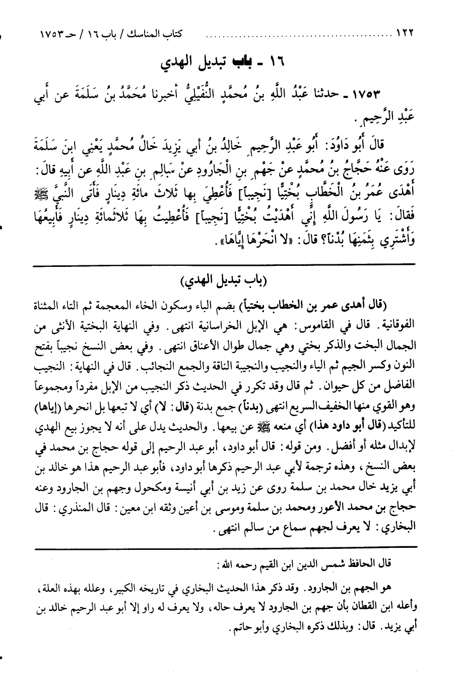 ثُمَّ قَالَ وَقَدْ تَكَرَّرَ فِي الْحَدِيثِ ذِكْرُ النَّجِيبِ مِنَ الْإِبِلِ مُفْرَدًا وَمَجْمُوعًا وَهُوَ الْقَوِيُّ مِنْهَا الْخَفِيفُ السَّرِيعُ انْتَهَى (بُدْنًا) جَمْعُ بَدَنَةٍ (قَالَ لَا) أَيْ لَا تَبِعْهَا بَلِ انْحَرْهَا (إِيَّاهَا) لِلتَّأْكِيدِ (قَالَ أَبُو دَاوُدَ هَذَا) أَيْ مَنْعُهُ صَلَّى اللَّهُ عَلَيْهِ وَسَلَّمَ عَنْ بَيْعِهَا