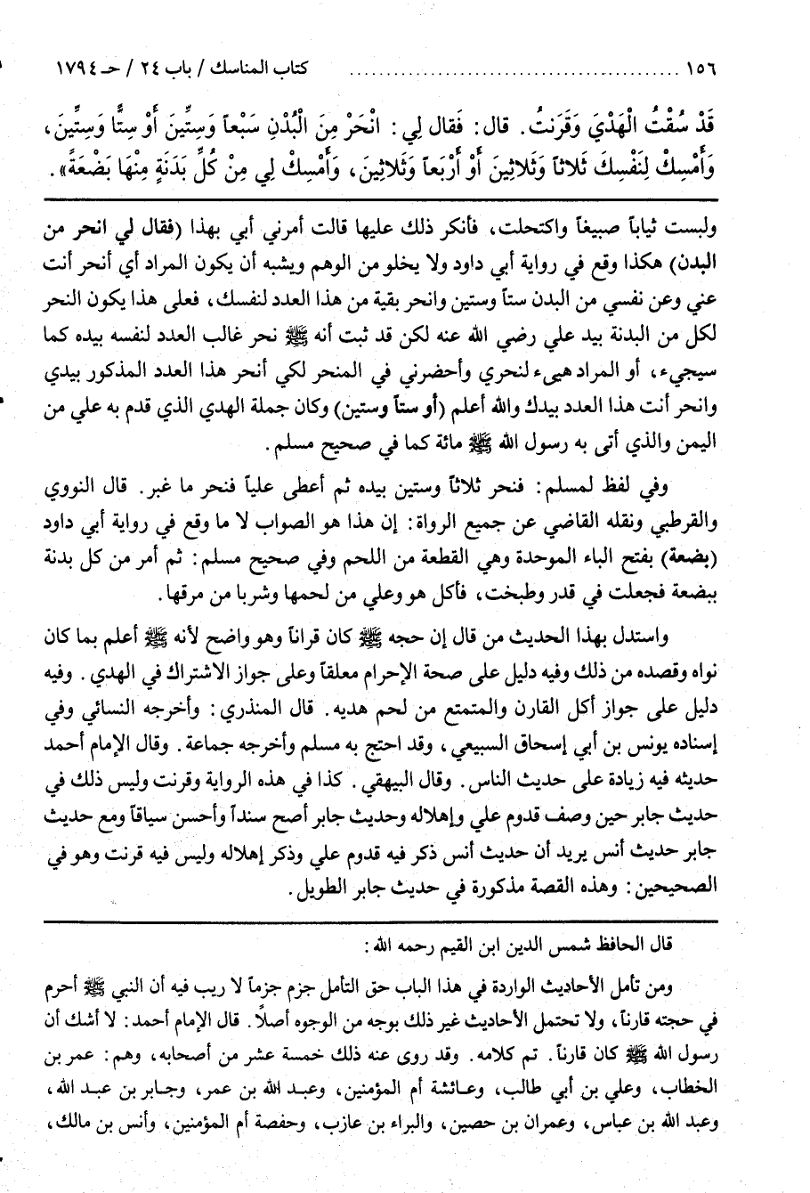 ــــــــــــQقال الحافظ شمس الدين بن القيم رحمه اللَّه وَمَنْ تَأَمَّلَ الْأَحَادِيث الْوَارِدَة فِي هَذَا الْبَاب حَقّ التَّأَمُّل جَزَمَ جَزْمًا لَا رَيْب فيه إن النبي صلى الله عليه وسلم أَحْرَمَ فِي حَجَّته قَارِنًا وَلَا تَحْتَمِل الْأَحَادِيث غَيْر ذَلِكَ بِوَجْهٍ مِنْ الْوُجُوه أَصْلًا