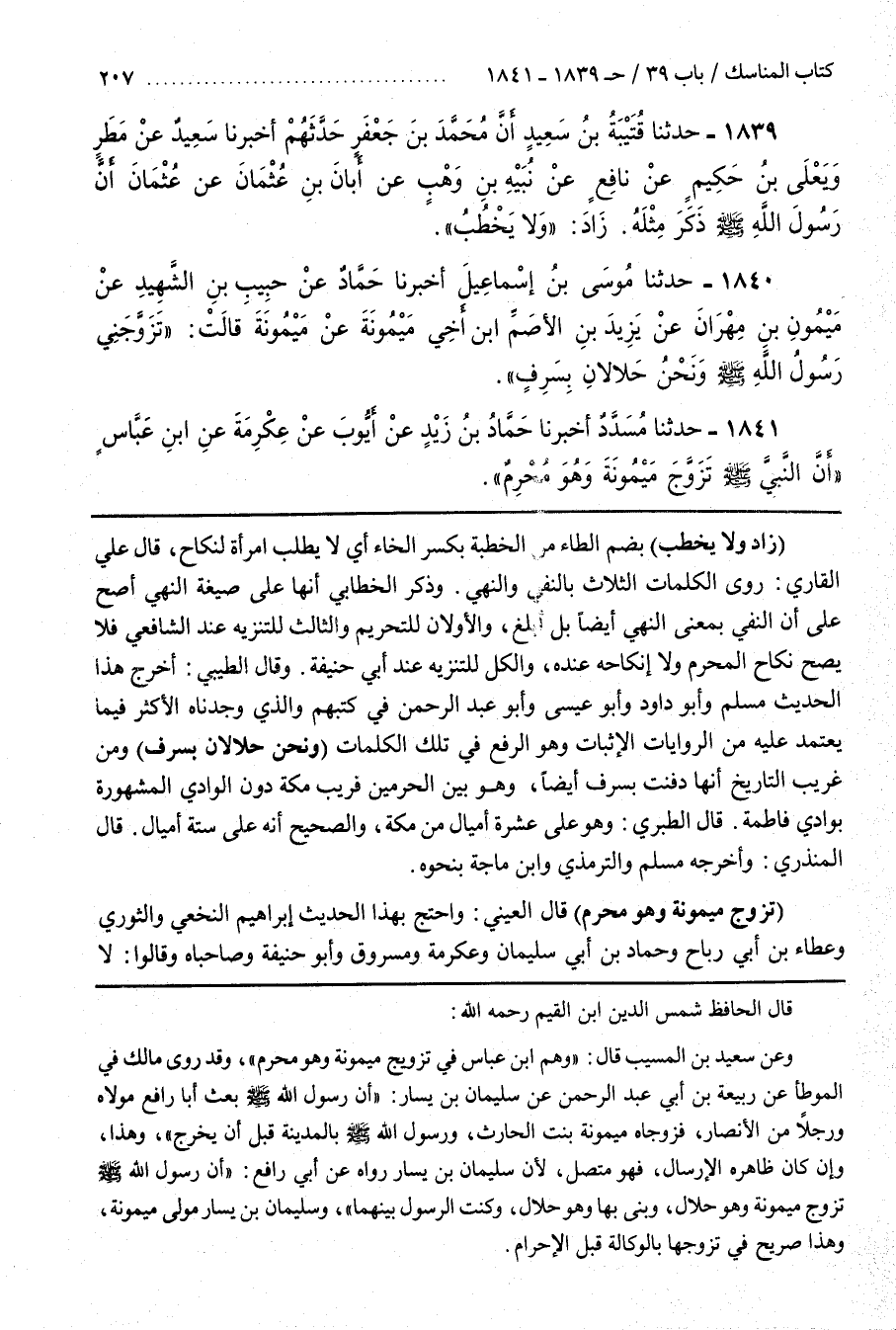 [1844] (تَزَوَّجَ مَيْمُونَةَ وَهُوَ مُحْرِمٌ) قَالَ الْعَيْنِيُّ وَاحْتَجَّ بِهَذَا الْحَدِيثِ إِبْرَاهِيمُ النَّخَعِيُّ وَالثَّوْرِيُّ وَعَطَاءُ بْنُ أَبِي رَبَاحٍ وَحَمَّادُ بْنُ أَبِي سُلَيْمَانَ وَعِكْرِمَةُ وَمَسْرُوقُ وَأَبُو حَنِيفَةَ وَصَاحِبَاهُ وَقَالُوا لا