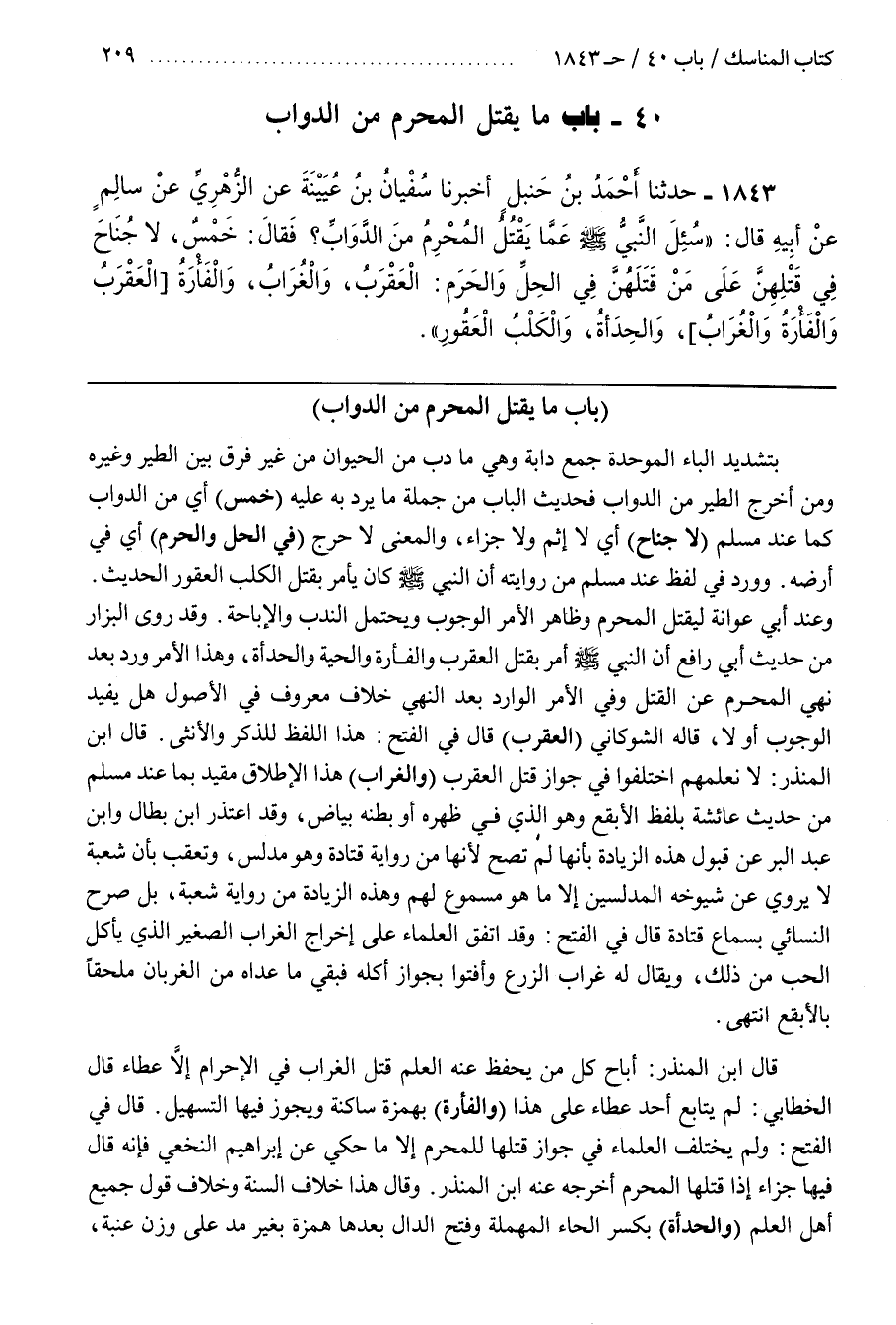 40 - (بَاب مَا يَقْتُلُ الْمُحْرِمُ مِنْ الدَّوَابِّ)