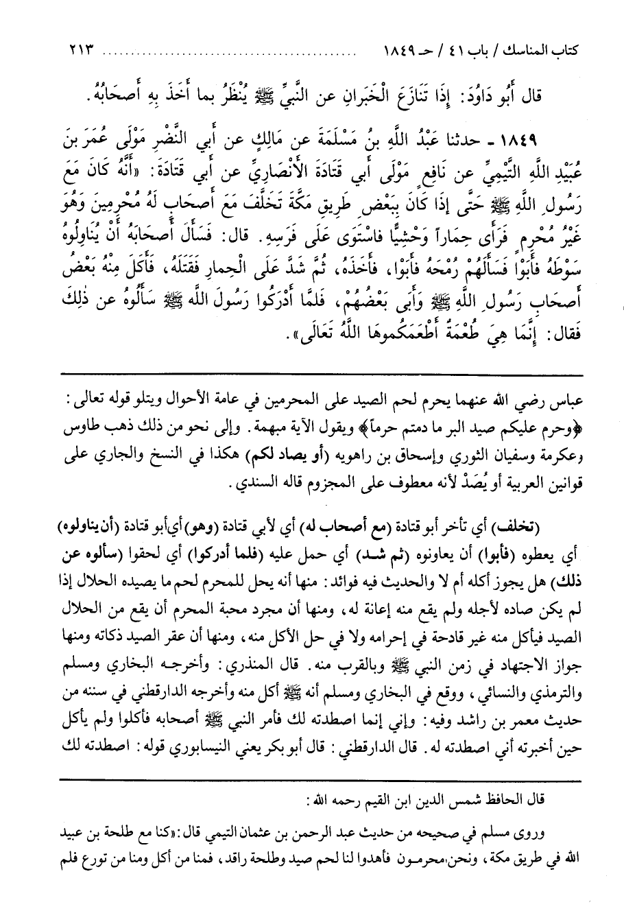 ــــــــــــQقال الحافظ شمس الدين بن القيم رحمه اللَّه وَرَوَى مُسْلِم فِي صَحِيحه مِنْ حَدِيث عَبْد الرَّحْمَن بْن عُثْمَان التَّيْمِيِّ قَالَ كُنَّا مَعَ طَلْحَة بْنِ عُبَيْد اللَّه فِي طَرِيق مَكَّة وَنَحْنُ مُحْرِمُونَ فَأَهْدَوْا لَنَا لَحْم صَيْد وَطَلْحَة رَاقِد فَمِنَّا مَنْ أَكَلَ وَمِنَّا مَنْ تورع فلم