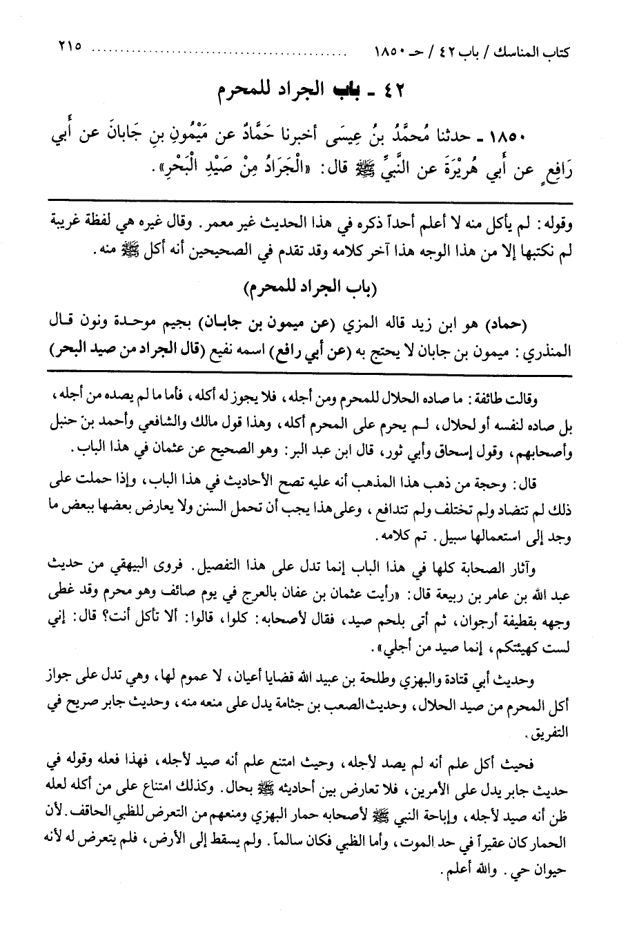 [1853] (حماد) هو بن زَيْدٍ قَالَهُ الْمِزِّيُّ (عَنْ مَيْمُونِ بْنِ جَابَانَ) بِجِيمٍ مُوَحَّدَةٍ وَنُونٍ قَالَ الْمُنْذِرِيُّ مَيْمُونُ بْنُ جَابَانَ لَا يُحْتَجُّ بِهِ (عَنْ أَبِي رَافِعٍ) اسْمُهُ نُفَيْعٌ (قَالَ الْجَرَادُ مِنْ صَيْدِ الْبَحْرِ