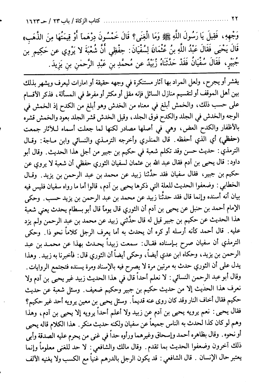 وَسُئِلَ يَحْيَى بْنُ مَعِينٍ يَرْوِيهِ أَحَدٌ غَيْرُ حَكِيمٍ فَقَالَ يَحْيَى نَعَمْ يَرْوِيهِ يَحْيَى بْنُ آدَمَ عَنْ زُبَيْدٍ وَلَا أَعْلَمُ أَحَدًا يَرْوِيهِ إِلَّا يَحْيَى بْنُ آدَمَ وَهَذَا وَهْمٌ لَوْ كَانَ كَذَا لَحَدَّثَ بِهِ النَّاسَ جَمِيعًا عَنْ سُفْيَانَ وَلَكِنَّهُ حَدِيثٌ مُنْكَرٌ