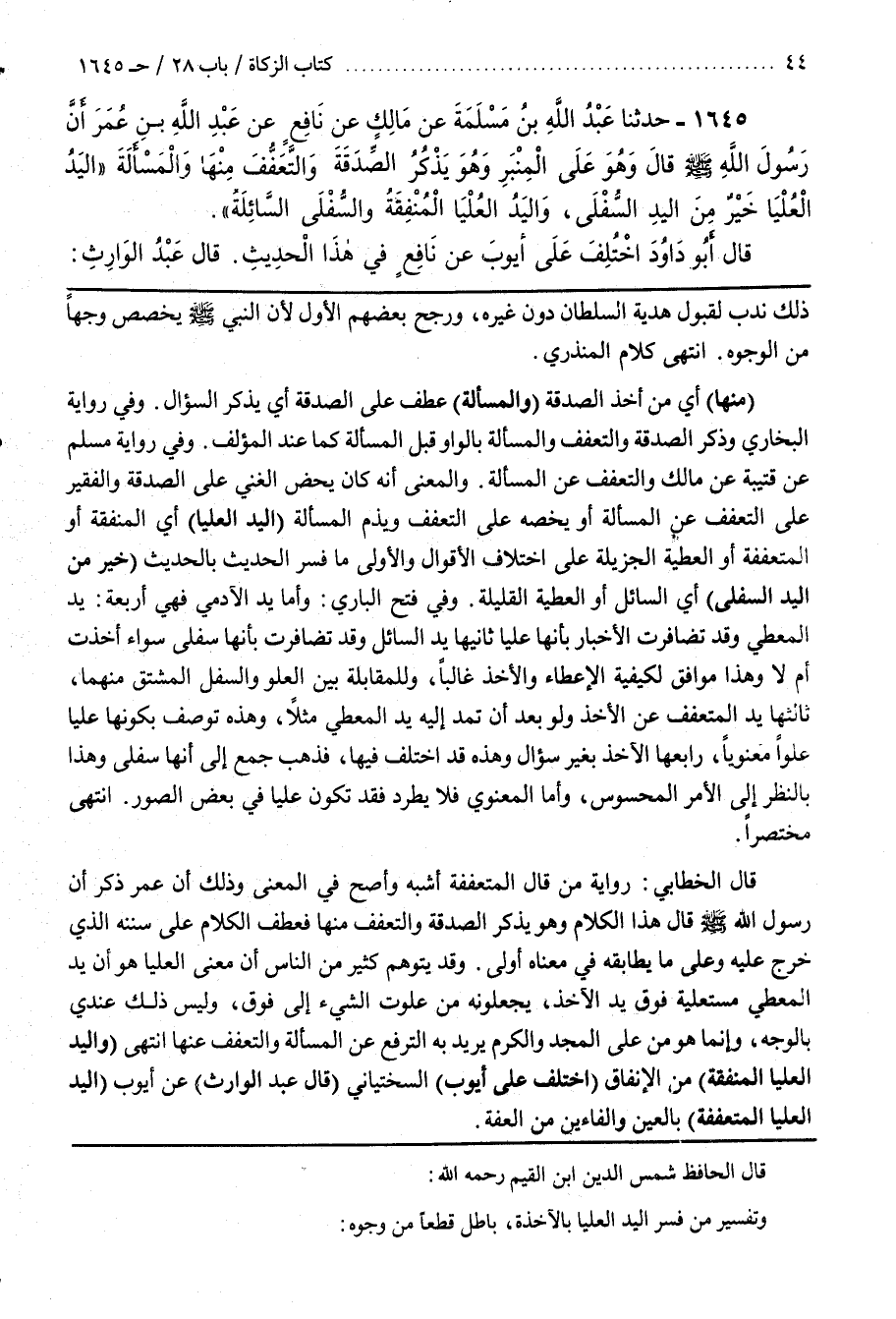 ــــــــــــQقال الحافظ شمس الدين بن القيم رحمه الله وتفسير من فسر اليد العليا بالآخذة باطل قطعا من وجوه