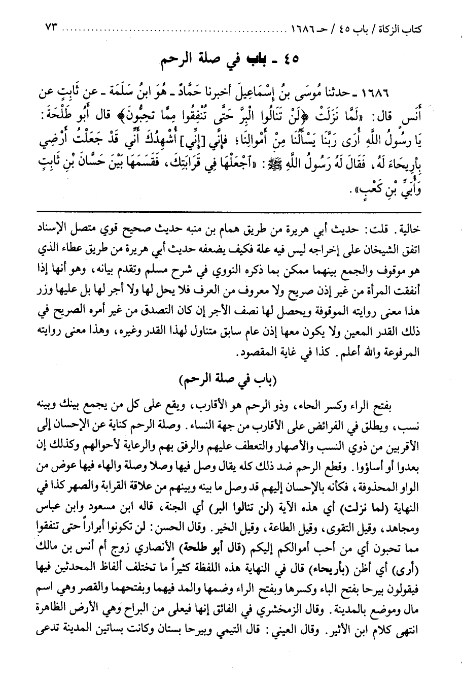 وَقَالَ الْحَسَنُ لَنْ تَكُونُوا أَبْرَارًا حَتَّى تُنْفِقُوا مِمَّا تُحِبُّونَ أَيْ مِنْ أَحَبِّ أَمْوَالِكُمْ إِلَيْكُمْ (قَالَ أَبُو طَلْحَةَ) الْأَنْصَارِيُّ زَوْجُ أُمِّ أَنَسِ بْنِ مَالِكٍ (أَرَى) أَيْ أَظُنُّ (بِأَرِيحَاءَ) قَالَ فِي النِّهَايَةِ هَذِهِ اللَّفْظَةُ كَثِيرًا مَا تَخْتَلِفُ أَلْفَاظُ الْمُحَدِّثِينَ فِيهَا فَيَقُولُونَ بَيْرُحَا بِفَتْحِ الْبَاءِ وَكَسْرِهَا وَبِفَتْحِ الرَّاءِ وَضَمِّهَا وَالْمَدُّ فِيهِمَا وَبِفَتْحِهِمَا وَالْقَصْرُ وَهِيَ اسْمُ مَالٍ وَمَوْضِعٍ بِالْمَدِينَةِ