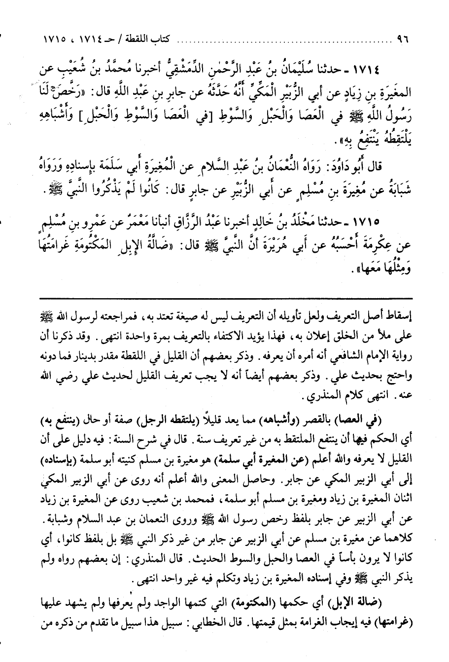[1718] (ضَالَّةُ الْإِبِلِ) أَيْ حُكْمُهَا (الْمَكْتُومَةِ) الَّتِي كَتَمَهَا الْوَاجِدُ وَلَمْ يُعَرِّفْهَا وَلَمْ يشهد عليها (غرامتها) فيه إيجاب الغرامة بمثل قِيمَتِهَا