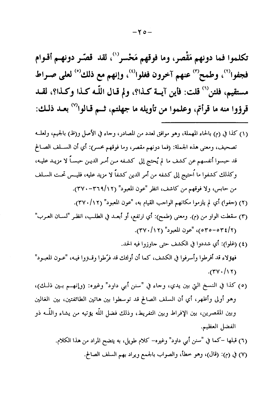 تَكَلَّمُوا فَمَا دُونَهُمْ مَقْصَرٌ وَمَا فَوْقَهُمْ مَحْسَرٌ لَقَدْ قَصَّرَ دُونَهُمْ أَقْوَامٌ فَجَفُوا وَطَمِحَ عَنْهُمْ آخَرُونَ فَغَلُّوا وَإِنَّهُمْ مَعَ ذَلِكَ لَعَلَى صِرَاطٍ مُسْتَقِيمٍ فَلَئِنْ قُلْتُ فَأَيْنَ آيَةُ كَذَا وَلِمَ قَالَ اللَّهُ كَذَا وَكَذَا لقد قرؤوا مِنْهُ مَا قَرَأْتُمْ وَعَلِمُوا مِنْ تَأْوِيلِهِ مَا جَهِلْتُمْ ثُمَّ قَالُوا بَعْدَ ذَلِكَ