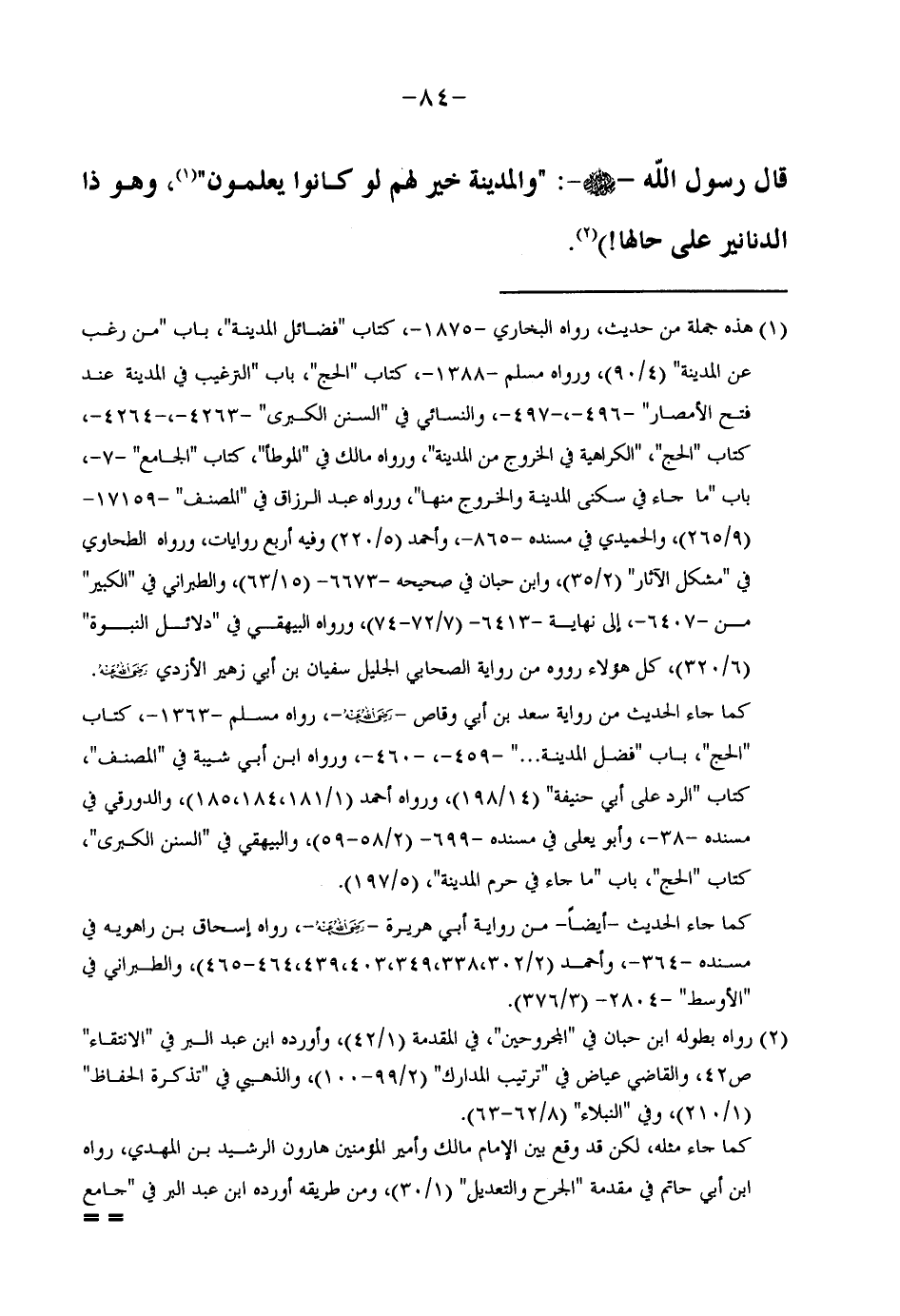 قَالَ رَسُولُ اللَّهِ صَلَّى اللَّهُ عَلَيْهِ وَسَلَّمَ وَالْمَدِينَةُ خَيْرٌ لَهُمْ لوكانوا يَعْلَمُونَ وَهُوَ ذَا الدَّنَانِيرِ عَلَى حَالِهَا)