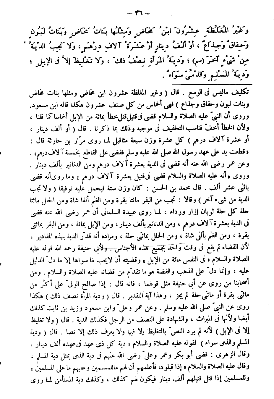 وَغَيْرُ الْمُغَلَّظَةِ عِشْرُونَ ابْنُ مَخَاضٍ وَمِثْلُهَا بَنَاتُ مَخَاضٍ وَبَنَاتُ لَبُونٍ وَحِقَاقٌ وَجِذَاعٌ، أَوْ أَلْفُ دِينَارٍ أَوْ عَشَرَةُ آلَافِ دِرْهَمٍ، وَلَا تَجِبُ الدِّيَةُ مِنْ شَيْءٍ آخَرَ (سم) ، وَدِيَةُ الْمَرْأَةِ نِصْفُ ذَلِكَ، وَلَا تَغْلِيظَ إِلَّا فِي الْإِبِلِ، وَدِيَةُ الْمُسْلِمِ وَالذِّمِّيِّ سَوَاءٌ.