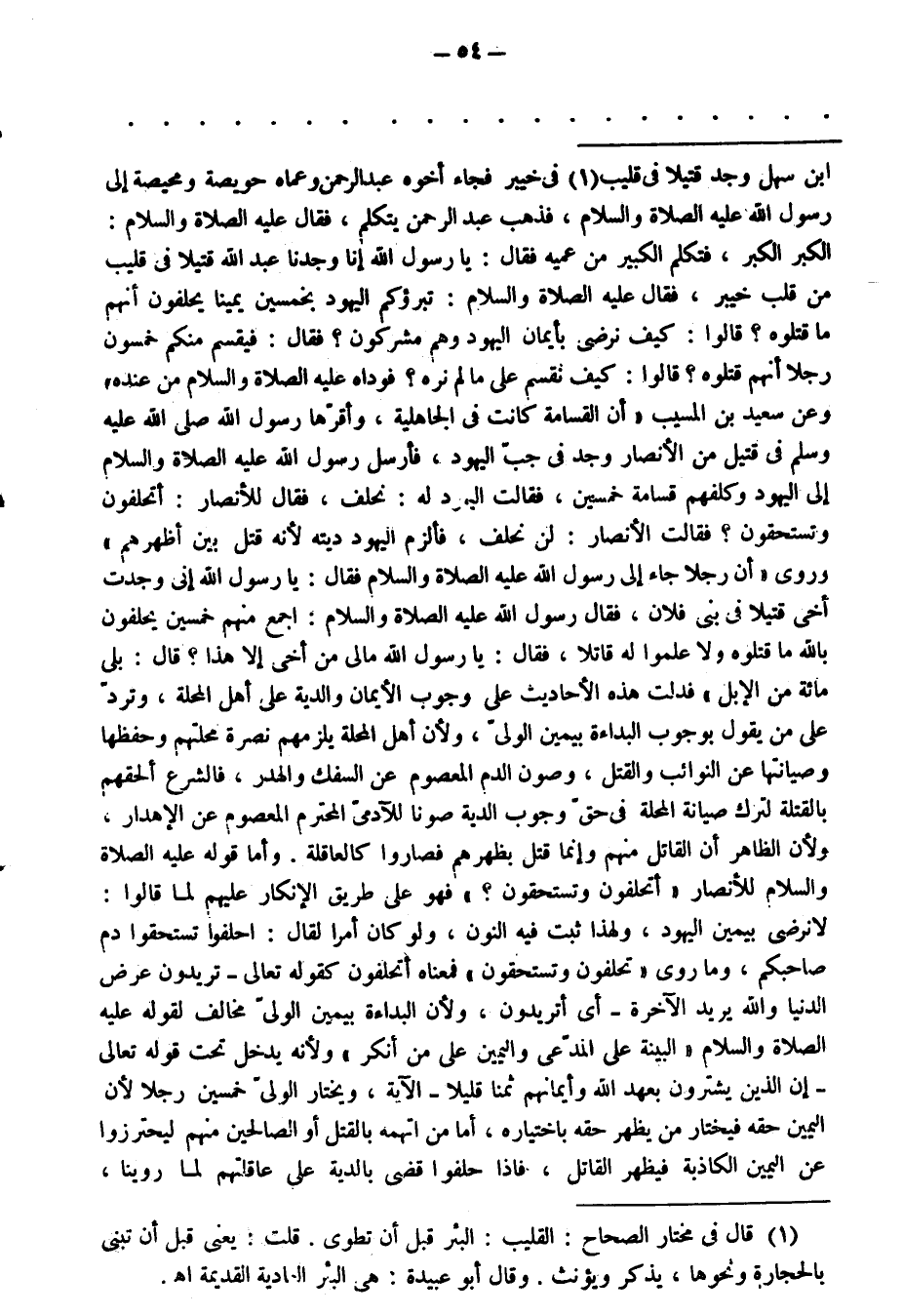 ـــــــــــــــــــــــــــــQوَجَدَ قَتِيلًا فِي قَلِيبٍ فِي خَيْبَرَ فَجَاءَ أَخُوهُ عَبْدُ الرَّحْمَنِ وَعَمَّاهُ حُوَيِّصَةُ وَمُحَيِّصَةُ إِلَى رَسُولِ اللَّهِ - عَلَيْهِ الصَّلَاةُ وَالسَّلَامُ -، فَذَهَبَ عَبْدُ الرَّحْمَنِ يَتَكَلَّمُ، فَقَالَ - عَلَيْهِ الصَّلَاةُ وَالسَّلَامُ -: الْكُبْرَ الْكُبْرَ، فَتَكَلَّمَ الْكَبِيرُ مِنْ عَمَّيْهِ فَقَالَ: يَا رَسُولَ اللَّهِ إِنَّا وَجَدْنَا عَبْدَ اللَّهِ قَتِيلًا فِي قَلِيبٍ مِنْ قُلُبِ خَيْبَرَ، فَقَالَ - عَلَيْهِ الصَّلَاةُ وَالسَّلَامُ -: تُبَرِّئُكُمُ الْيَهُودُ بِخَمْسِينَ يَمِينًا يَحْلِفُونَ أَنَّهُمْ مَا قَتَلُوهُ؟ قَالُوا: كَيْفَ نَرْضَى بِأَيْمَانِ الْيَهُودِ وَهُمْ مُشْرِكُونَ؟ فَقَالَ: فَيُقْسِمُ مِنْكُمْ خَمْسُونَ رَجُلًا أَنَّهُمْ قَتَلُوهُ؟ قَالُوا: كَيْفَ نُقْسِمُ عَلَى مَا لَمْ نَرَهُ؟ فَوَدَّاهُ - عَلَيْهِ الصَّلَاةُ وَالسَّلَامُ - مِنْ عِنْدِهِ» وَعَنْ سَعِيدِ بْنِ الْمُسَيَّبِ: «أَنَّ الْقَسَامَةَ كَانَتْ فِي الْجَاهِلِيَّةِ، وَأَقَرَّهَا رَسُولُ اللَّهِ - صَلَّى اللَّهُ عَلَيْهِ وَسَلَّمَ - فِي قَتِيلٍ مِنَ الْأَنْصَارِ وُجِدَّ فِي جُبِّ الْيَهُودِ، فَأَرْسَلَ رَسُولُ اللَّهِ - عَلَيْهِ الصَّلَاةُ وَالسَّلَامُ - إِلَى الْيَهُودِ وَكَلَّفَهُمْ قَسَامَةَ خَمْسِينَ، فَقَالَتِ الْيَهُودُ لَهُ: نَحْلِفُ، فَقَالَ لِلْأَنْصَارِ: أَتَحْلِفُونَ وَتَسْتَحِقُّونَ؟ فَقَالَ الْأَنْصَارُ: لَنْ نَحْلِفَ، فَأَلْزَمَ الْيَهُودَ دِيَتَهُ لِأَنَّهُ قُتِلَ بَيْنَ أَظْهُرِهِمْ» ، وَرُوِيَ: «أَنَّ رَجُلًا جَاءَ إِلَى رَسُولِ اللَّهِ - عَلَيْهِ الصَّلَاةُ وَالسَّلَامُ - فَقَالَ: يَا رَسُولَ اللَّهِ إِنِّي وَجَدْتُ أَخِي قَتِيلًا فِي بَنِي فُلَانٍ، فَقَالَ رَسُولُ اللَّهِ - عَلَيْهِ الصَّلَاةُ وَالسَّلَامُ -: اجْمَعْ مِنْهُمْ خَمْسِينَ يَحْلِفُونَ بِاللَّهِ مَا قَتَلُوهُ وَلَا عَلِمُوا لَهُ قَاتِلًا، فَقَالَ: يَا رَسُولَ اللَّهِ مَا لِي مِنْ أَخِي إِلَّا هَذَا؟ قَالَ: بَلَى مِائَةٌ مِنَ الْإِبِلِ» فَدَلَّتْ هَذِهِ الْأَحَادِيثُ عَلَى وُجُوبِ الْأَيْمَانِ وَالدِّيَةِ عَلَى أَهْلِ الْمَحِلَّةِ، وَتَرَدُّ عَلَى مَنْ يَقُولُ بِوُجُوبِ الْبَدَاءَةِ بِيَمِينِ الْوَلِيِّ، وَلِأَنَّ أَهْلَ الْمَحِلَّةِ يَلْزَمُهُمْ نُصْرَةُ مَحِلَّتِهِمْ وَحِفْظُهَا وَصِيَانَتُهَا عَنِ النَّوَائِبِ وَالْقَتْلِ، وَصَوْنِ الدَّمِ الْمَعْصُومِ عَنِ السَّفْكِ وَالْهَدْرِ، فَالشَّرْعُ أَلْحَقَهُمْ بِالْقَتَلَةِ لِتَرْكِ صِيَانَةِ الْمَحِلَّةِ فِي حَقِّ وُجُوبِ الدِّيَةِ صَوْنًا لِلْآدَمِيِّ الْمُحْتَرَمِ الْمَعْصُومِ عَنِ الْإِهْدَارِ، وَلِأَنَّ الظَّاهِرَ أَنَّ الْقَاتِلَ مِنْهُمْ وَإِنَّمَا قُتِلَ بِظَهْرِهِمْ فَصَارُوا كَالْعَاقِلَةِ. وَأَمَّا قَوْلُهُ - عَلَيْهِ الصَّلَاةُ وَالسَّلَامُ - لِلْأَنْصَارِ: «أَتَحْلِفُونَ وَتَسْتَحِقُّونَ» فَهُوَ عَلَى طَرِيقِ الْإِنْكَارِ عَلَيْهِمْ لِمَا قَالُوا: لَا نَرْضَى بِيَمِينِ الْيَهُودِ، وَلِهَذَا ثَبَتَ فِيهِ النُّونُ، وَلَوْ كَانَ أَمْرًا لَقَالَ: احْلِفُوا تَسْتَحِقُّوا دَمَ صَاحِبِكُمْ، وَمَا رُوِيَ: «تَحْلِفُونَ وَتَسْتَحِقُّونَ» فَمَعْنَاهُ أَتَحْلِفُونَ كَقَوْلِهِ تَعَالَى: {تُرِيدُونَ عَرَضَ الدُّنْيَا وَاللَّهُ يُرِيدُ الآخِرَةَ} [الأنفال: 67] أَيْ أَتُرِيدُونَ، وَلِأَنَّ الْبَدَاءَةَ بِيَمِينِ الْوَلِيِّ مُخَالِفٌ لِقَوْلِهِ - عَلَيْهِ الصَّلَاةُ وَالسَّلَامُ -: «الْبَيِّنَةُ عَلَى الْمُدَّعِي وَالْيَمِينُ عَلَى مَنْ أَنْكَرَ» ، وَلِأَنَّهُ يَدْخُلُ تَحْتَ قَوْله تَعَالَى: {إِنَّ الَّذِينَ يَشْتَرُونَ بِعَهْدِ اللَّهِ وَأَيْمَانِهِمْ ثَمَنًا قَلِيلا} [آل عمران: 77] الْآيَةَ، وَ