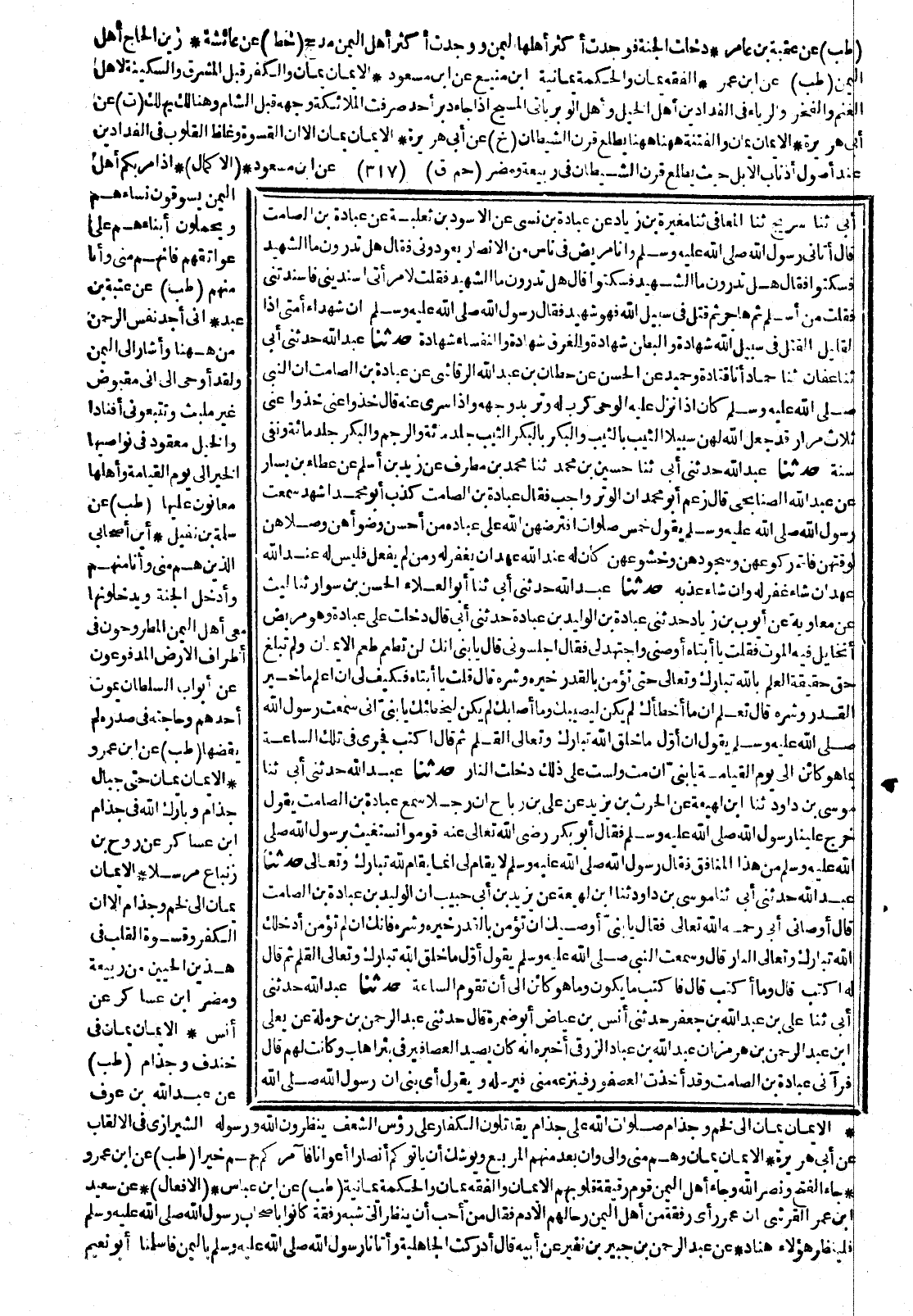 (22702) 23078- حَدَّثَنَا سُرَيْجٌ ، حَدَّثَنَا الْمُعَافَى ، حَدَّثَنَا مُغِيرَةُ بْنُ زِيَادٍ ، عَنْ عُبَادَةَ بْنِ نُسَيٍّ ، عَنِ الأَسْوَدِ بْنِ ثَعْلَبَةَ ، عَنْ عُبَادَةَ بْنِ الصَّامِتِ قَالَ : أَتَانِي رَسُولُ اللهِ صَلَّى اللَّهُ عَلَيْهِ وَسَلَّمَ وَأَنَا مَرِيضٌ فِي نَاسٍ مِنَ الأَنْصَارِ يَعُودُونِي فَقَالَ : هَلْ تَدْرُونَ مَا الشَّهِيدُ ؟ فَسَكَتُوا . فَقَالَ : هَلْ تَدْرُونَ مَا الشَّهِيدُ ؟ فَسَكَتُوا . قَالَ : هَلْ تَدْرُونَ مَا الشَّهِيدُ ؟ فَقُلْتُ لاِمْرَأَتِي : أَسْنِدِينِي فَأَسْنَدَتْنِي فَقُلْتُ : مَنْ أَسْلَمَ ، ثُمَّ هَاجَرَ ، ثُمَّ قُتِلَ فِي سَبِيلِ اللهِ فَهُوَ شَهِيدٌ . فَقَالَ رَسُولُ اللهِ صَلَّى اللَّهُ عَلَيْهِ وَسَلَّمَ : إِنَّ شُهَدَاءَ أُمَّتِي إِذًا لَقَلِيلٌ الْقَتْلُ فِي سَبِيلِ اللهِ شَهَادَةٌ ، وَالْبَطْنُ شَهَادَةٌ ، وَالْغَرَقُ شَهَادَةٌ ، وَالنُّفَسَاءُ شَهَادَةٌ.