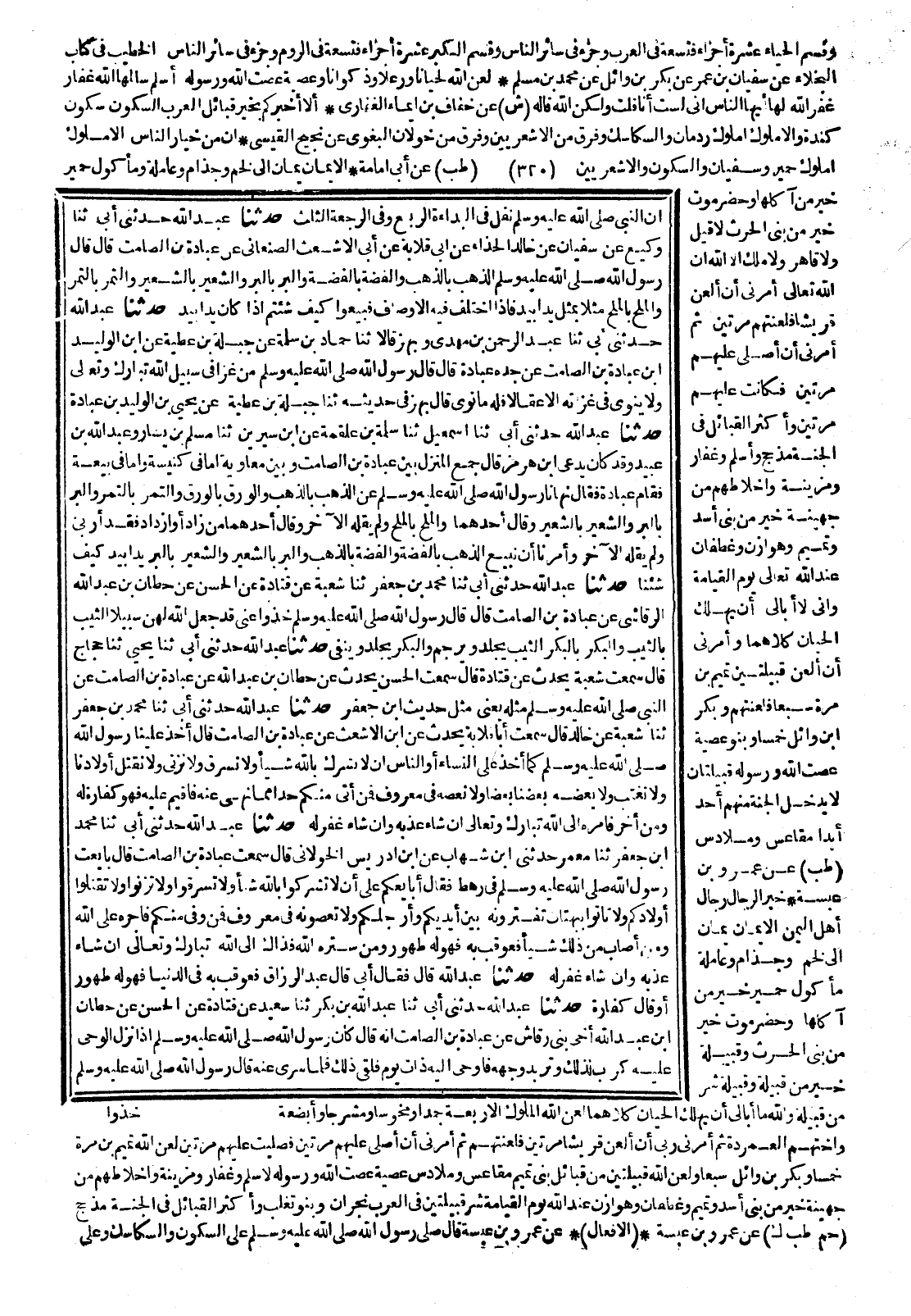 (22731) 23110- حَدَّثَنَا حَجَّاجٌ قَالَ : سَمِعْتُ شُعْبَةَ يُحَدِّثُ ، عَنْ قَتَادَةَ قَالَ : سَمِعْتُ الْحَسَنَ يُحَدِّثُ ، عَنْ حِطَّانَ بْنِ عَبْدِ اللهِ ، عَنْ عُبَادَةَ بْنِ الصَّامِتِ ، عَنِ النَّبِيِّ صَلَّى اللَّهُ عَلَيْهِ وَسَلَّمَ .... مِثْلَهُ - يَعْنِي مِثْلَ حَدِيثِ ابْنِ جَعْفَرٍ- .