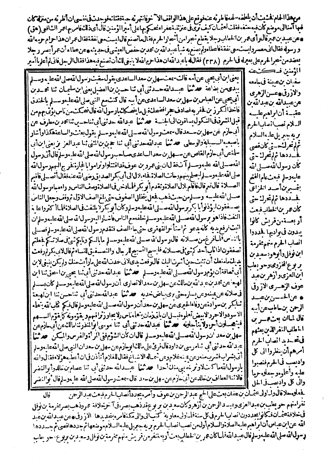 (22863) 23251- حَدَّثَنَا حُجَيْنُ بْنُ الْمُثَنَّى ، حَدَّثَنَا عَبْدُ الْعَزِيزِ ، يَعْنِي ابْنَ أَبِي سَلَمَةَ ، عَنْ أَبِي حَازِمٍ الْقَاصِّ ، عَنْ سَهْلِ بْنِ سَعْدٍ السَّاعِدِيِّ صَاحِبِ رَسُولِ اللهِ صَلَّى اللَّهُ عَلَيْهِ وَسَلَّمَ قَالَ : أَتَى رَسُولَ اللهِ صَلَّى اللَّهُ عَلَيْهِ وَسَلَّمَ آتٍ فَقَالَ : إِنَّ بَنِي عَمْرِو بْنِ عَوْفٍ قَدْ اقْتَتَلُوا وَتَرَامَوْا بِالْحِجَارَةِ ، فَخَرَجَ إِلَيْهِمْ رَسُولُ اللهِ صَلَّى اللَّهُ عَلَيْهِ وَسَلَّمَ لِيُصْلِحَ بَيْنَهُمْ ، وَحَانَتِ الصَّلاَةُ ، فَجَاءَ بِلاَلٌ إِلَى أَبِي بَكْرٍ الصِّدِّيقِ فَقَالَ : أَتُصَلِّي فَأُقِيمَ الصَّلاَةَ ؟ قَالَ : نَعَمْ . قَالَ : فَأَقَامَ بِلاَلٌ الصَّلاَةَ ، وَتَقَدَّمَ أَبُو بَكْرٍ ، فَلَمَّا دَخَلَ فِي الصَّلاَةِ ، وَصَفَّ النَّاسُ وَرَاءَهُ جَاءَ رَسُولُ اللهِ صَلَّى اللَّهُ عَلَيْهِ وَسَلَّمَ مِنْ حَيْثُ ذَهَبَ ، فَجَعَلَ يَتَخَلَّلُ الصُّفُوفَ حَتَّى بَلَغَ الصَّفَّ الأَوَّلَ ، ثُمَّ وَقَفَ وَجَعَلَ النَّاسُ يُصَفِّقُونَ لِيُؤْذِنُوا أَبَا بَكْرٍ بِرَسُولِ اللهِ صَلَّى اللَّهُ عَلَيْهِ وَسَلَّمَ ، وَكَانَ أَبُو بَكْرٍ لاَ يَلْتَفِتُ فِي الصَّلاَةِ ، فَلَمَّا أَكْثَرُوا عَلَيْهِ الْتَفَتَ ، فَإِذَا هُوَ بِرَسُولِ اللهِ صَلَّى اللَّهُ عَلَيْهِ وَسَلَّمَ خَلْفَهُ مَعَ النَّاسِ ، فَأَشَارَ إِلَيْهِ رَسُولُ اللهِ صَلَّى اللَّهُ عَلَيْهِ وَسَلَّمَ أَنْ اثْبُتْ فَرَفَعَ يَدَيْهِ كَأَنَّهُ يَدْعُو ، ثُمَّ اسْتَأْخَرَ الْقَهْقَرَى حَتَّى جَاءَ الصَّفَّ ، فَتَقَدَّمَ رَسُولُ اللهِ صَلَّى اللَّهُ عَلَيْهِ وَسَلَّمَ ، فَصَلَّى بِالنَّاسِ ، فَلَمَّا فَرَغَ مِنْ صَلاَتِهِ قَالَ رَسُولُ اللهِ صَلَّى اللَّهُ عَلَيْهِ وَسَلَّمَ : مَا بَالُكُمْ وَنَابَكُمْ شَيْءٌ فِي صَلاَتِكُمْ فَجَعَلْتُمْ تُصَفِّقُونَ ؟ إِذَا نَابَ أَحَدَكُمْ شَيْءٌ فِي صَلاَتِهِ فَلْيُسَبِّحِ فَإِنَّمَا التَّسْبِيحُ لِلرِّجَالِ وَالتَّصْفِيقُ لِلنِّسَاءِ . ثُمَّ قَالَ لأَبِي بَكْرٍ : لِمَ رَفَعْتَ يَدَيْكَ ؟ مَا مَنَعَكَ أَنْ تَثْبُتَ حِينَ أَشَرْتُ إِلَيْكَ ؟ قَالَ : رَفَعْتُ يَدَيَّ ؛ لأَنِّي حَمِدْتُ عَلَى مَا رَأَيْتُ مِنْكَ ، وَلَمْ يَكُنْ يَنْبَغِي لاِبْنِ أَبِي قُحَافَةَ أَنْ يَؤُمَّ رَسُولَ اللَّهِ.