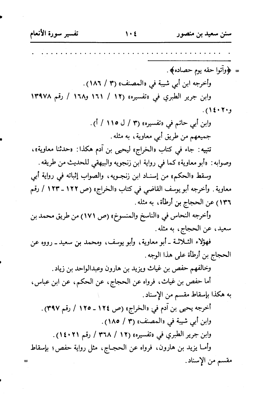 تنبيه: جاء في "كتاب الخراج" ليحيى بن آدم هكذا: ((حدثنا معاوية)) ، وصوابه: ((أبو معاوية)) كما في رواية ابن زنجويه والبيهقي للحديث من طريقه.
