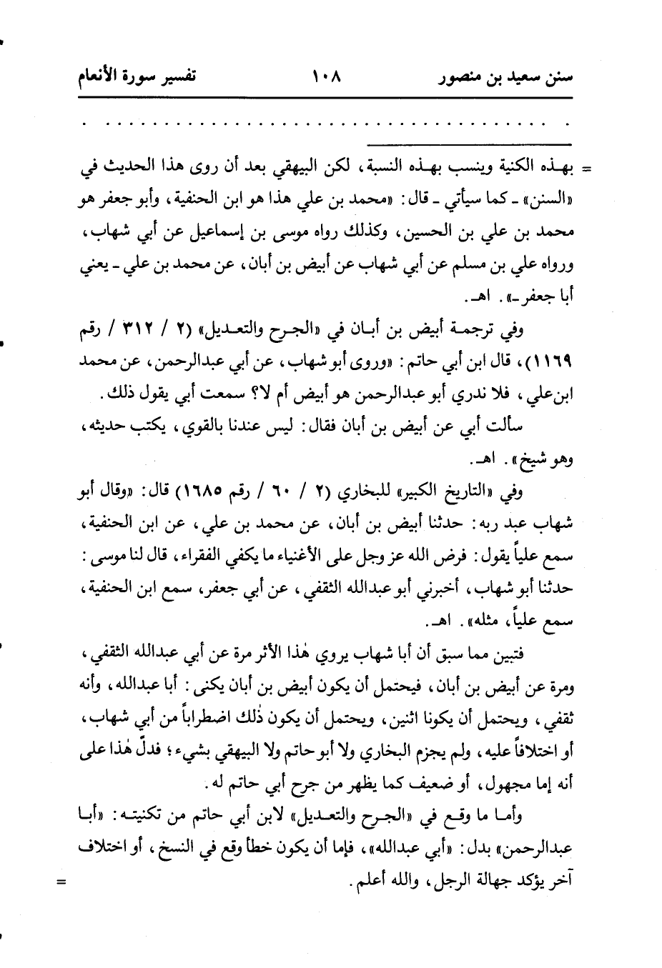 وفي ترجمة أبيض بن أبان في "الجرح والتعديل" (٢ / ٣١٢ رقم ١١٦٩) ، قال ابن أبي حاتم: ((وروى أَبُو شِهَابٍ، عَنْ أَبِي عَبْدِ الرحمن، عن محمد بن علي، فلا ندري أبو عبد الرحمن هو أبيض أم لا؟ سمعت أبي يقول ذلك.