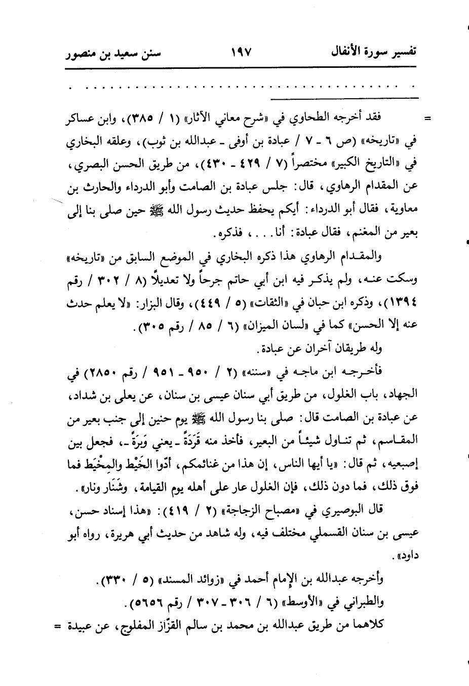 = فقد أخرجه الطحاوي في «شرح معاني الآثار» (١ / ٣٨٥) ، وابن عساكر في «تاريخه» (ص ٦ - ٧ / عبادة بن أوفى - عبد الله بن ثوب) ، وعلقه البخاري في «التاريخ الكبير» ، مختصرًا (٧ / ٤٢٩ - ٤٣٠) ، من طريق الحسن البصري، عن المقدام الرهاوي، قال: جلس عبادة بن الصامت وأبو الدرداء والحارث بن معاوية، فقال أبو الدرداء: أيكم يحفظ حديث رَسُولُ اللَّهِ صَلَّى اللهُ عَلَيْهِ وسلم حين صلى بنا إلى بعير من المغنم، فقال عبادة: أنا ... ، فذكره.