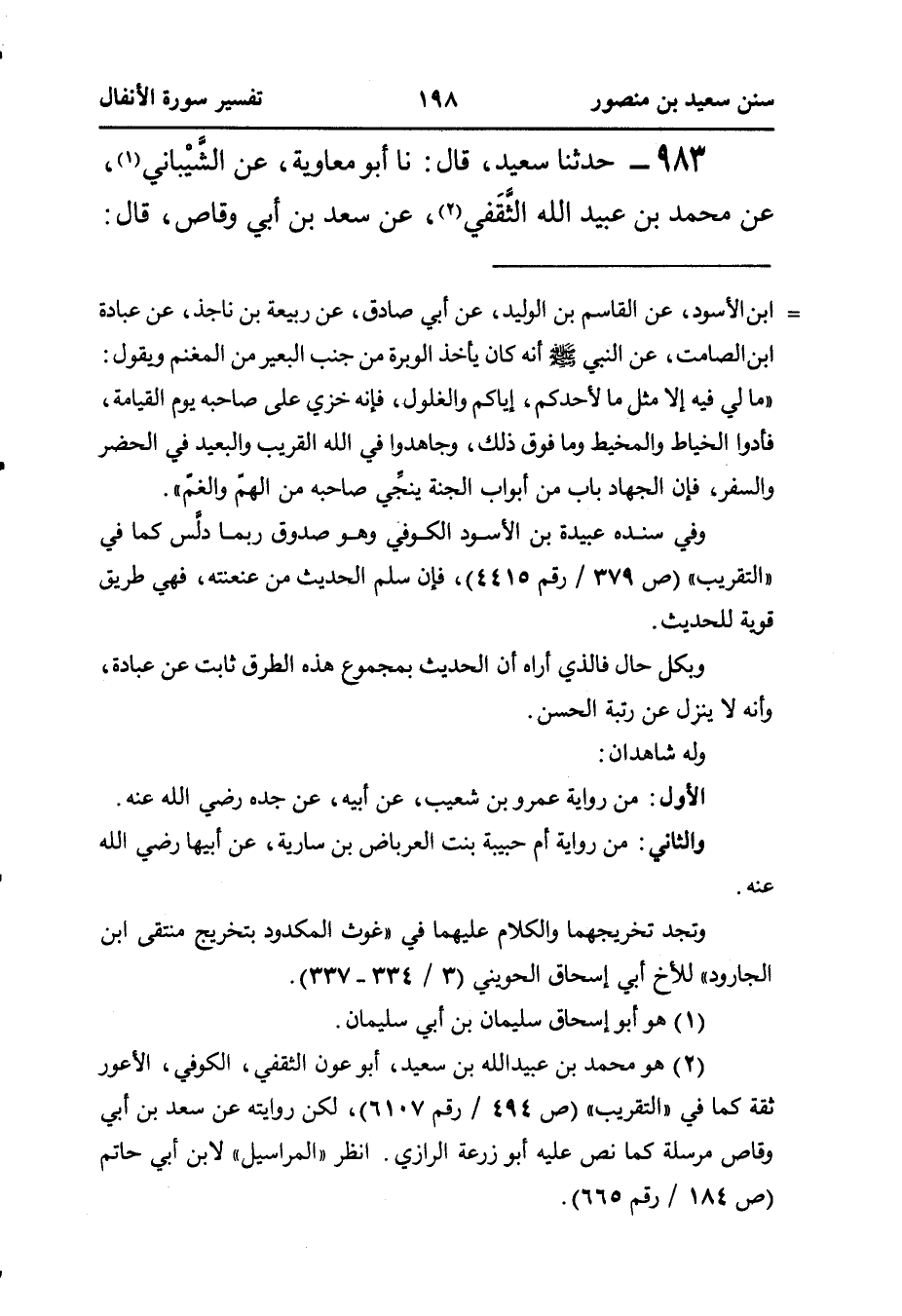 ٩٨٣ - حَدَّثَنَا سَعِيدٌ؛ قَالَ: نا أَبُو مُعَاوِيَةَ، عَنِ الشَّيْباني (¬١)، عَنْ مُحَمَّدِ بْنِ عُبَيْدِ اللَّهِ الثَّقَفي (¬٢)، عَنْ سَعْدِ بْنِ أَبِي وَقَّاصٍ، قَالَ: