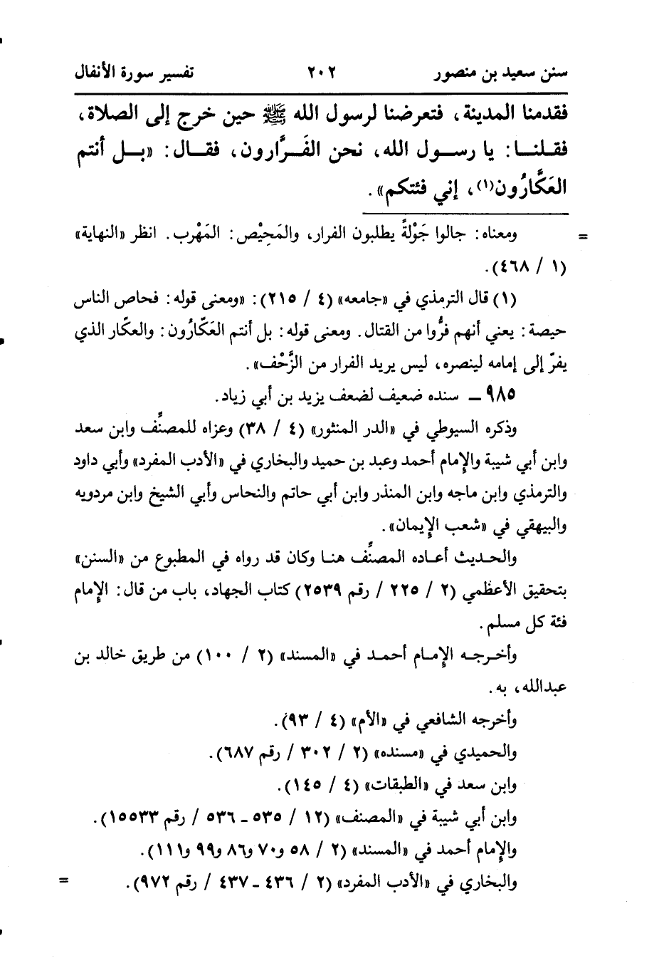 (¬١) قال الترمذي في «جامعه» (٤/ ٢١٥): «ومعنى قوله: فحاص الناس حيصة: يعني أنهم فرُّوا من القتال. ومعنى قوله: بل أنتم العَكّارُون: والعكّار الذي يفرّ إلى إمامه لينصره، ليس يريد الفرار من الزَّحْف».