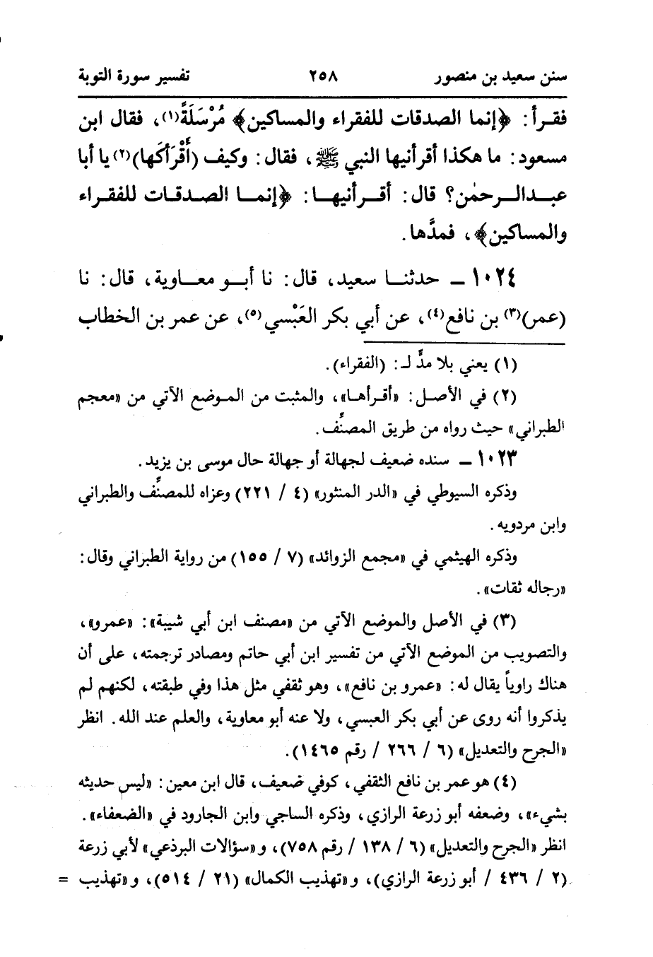 ١٠٢٤ - حَدَّثَنَا سَعِيدٌ، قَالَ: نَا أَبُو مُعَاوِيَةَ، قَالَ: نَا (عُمَرُ) (¬٣) بْنُ نَافِعٍ (¬٤)، عَنْ أَبِي بَكْرٍ العَبْسي (¬٥)، عَنْ عُمَرَ بْنِ الْخَطَّابِ