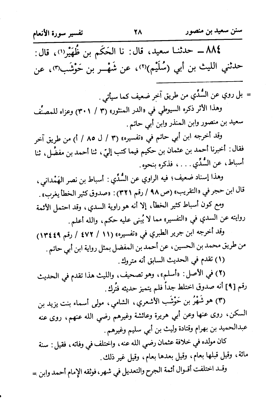 ٨٨٤ - حَدَّثَنَا سَعِيدٌ، قَالَ: نَا الحَكَم بْنُ ظُهَيْر (¬١)، قَالَ: حَدَّثَنِي اللَّيْثُ بْنُ أَبِي (سُلَيْم) (¬٢)، عَنْ شَهْر بن حَوْشَب (¬٣)، عن