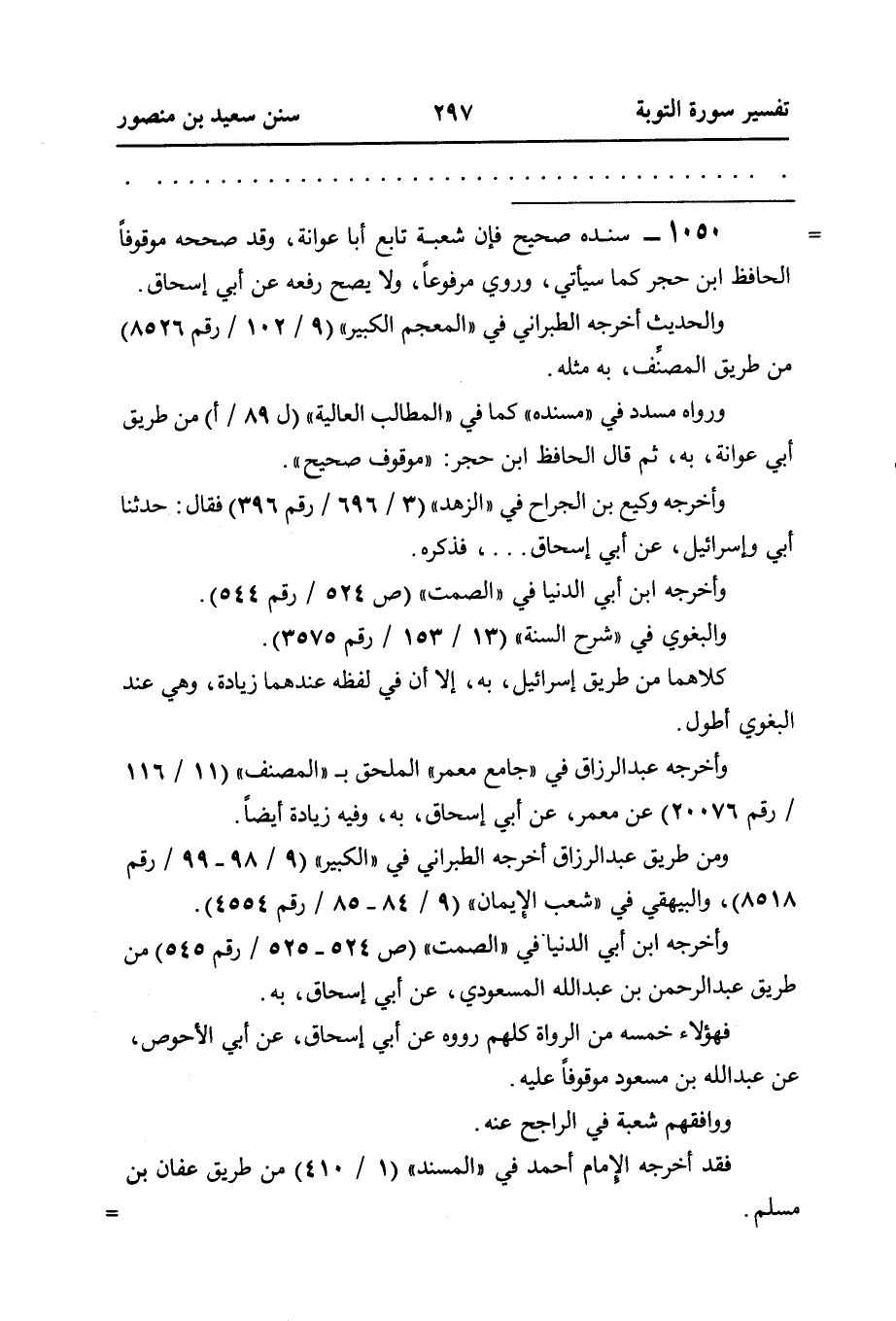 = ١٠٥٠ - سنده صحيح فإن شعبة تابع أبا عوانة، وقد صححه موقوفًا الحافظ ابن حجر كما سيأتي، وروي مرفوعًا، ولا يصح رفعه عن أبي إسحاق.
