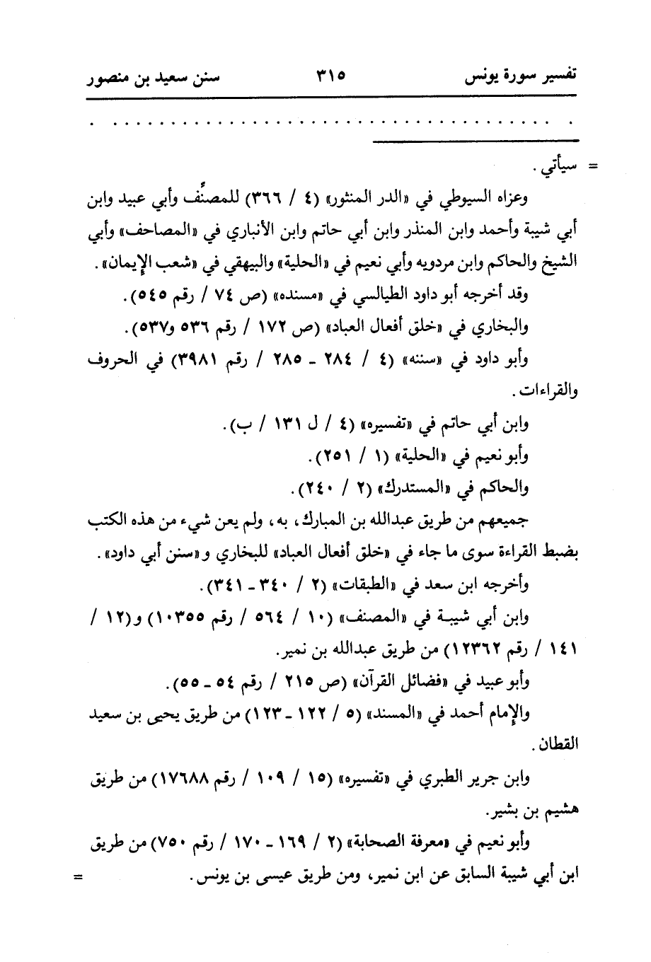 جميعهم من طريق عبد الله بن المبارك، به، ولم يعن شيء من هذه الكتب بضبط القراءة سوى ما جاء في ((خلق أفعال العباد)) للبخاري و ((سنن أبي داود)) .