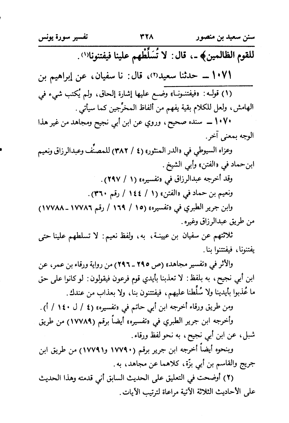 ١٠٧١ - حَدَّثَنَا سَعِيدٌ (¬٢)، قَالَ: نا سُفْيَانُ، عن إبراهيم بن