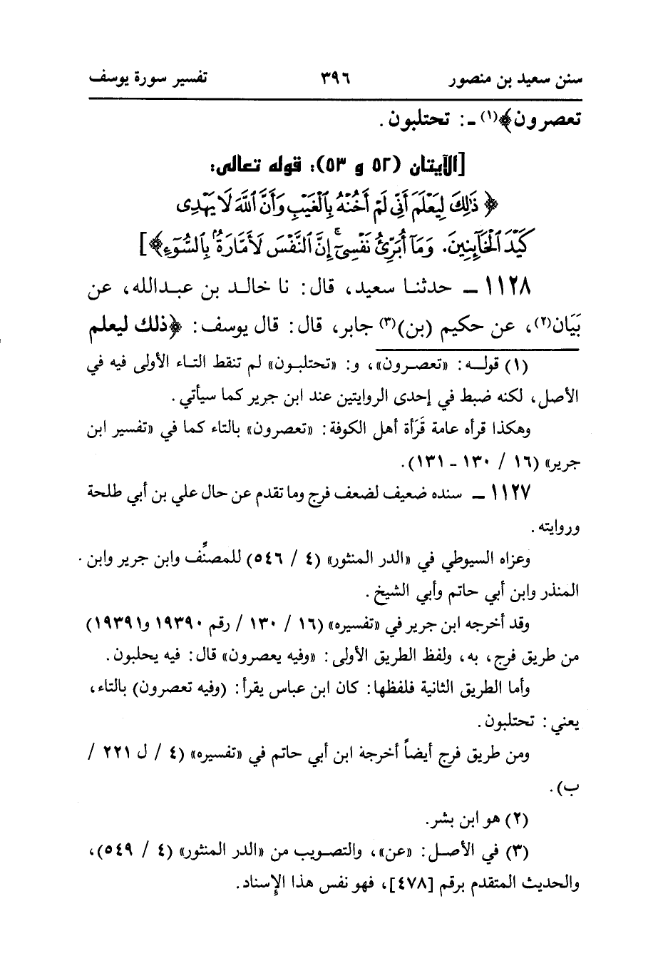 ١١٢٨ - حَدَّثَنَا سَعِيدٌ، قَالَ: نا خَالِدُ بْنُ عَبْدِ اللَّهِ، عَنْ بَيَان (¬٢)، عَنْ حَكِيمِ (بْنِ) (¬٣) جَابِرٍ، قَالَ: قال يوسف: {ذَلِكَ لِيَعْلَمَ