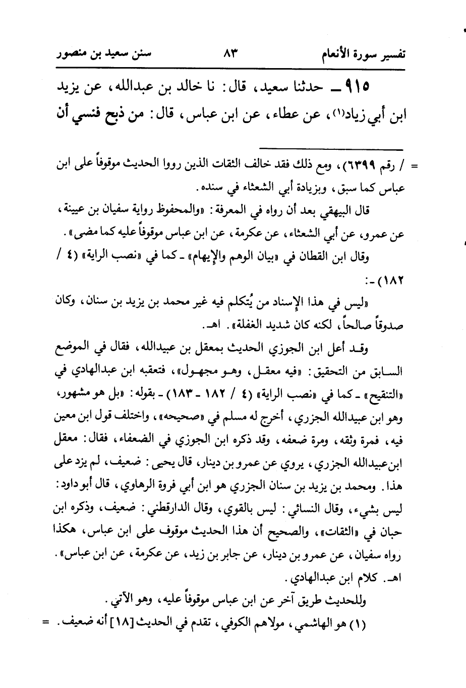 ٩١٥ - حَدَّثَنَا سَعِيدٌ، قَالَ: نا خَالِدُ بْنُ عَبْدِ اللَّهِ، عَنْ يَزِيدَ ابن أَبِي زِيَادٍ (¬١)، عَنْ عَطَاءٍ، عَنِ ابْنِ عَبَّاسٍ، قَالَ: مَنْ ذَبَحَ فنسي أن