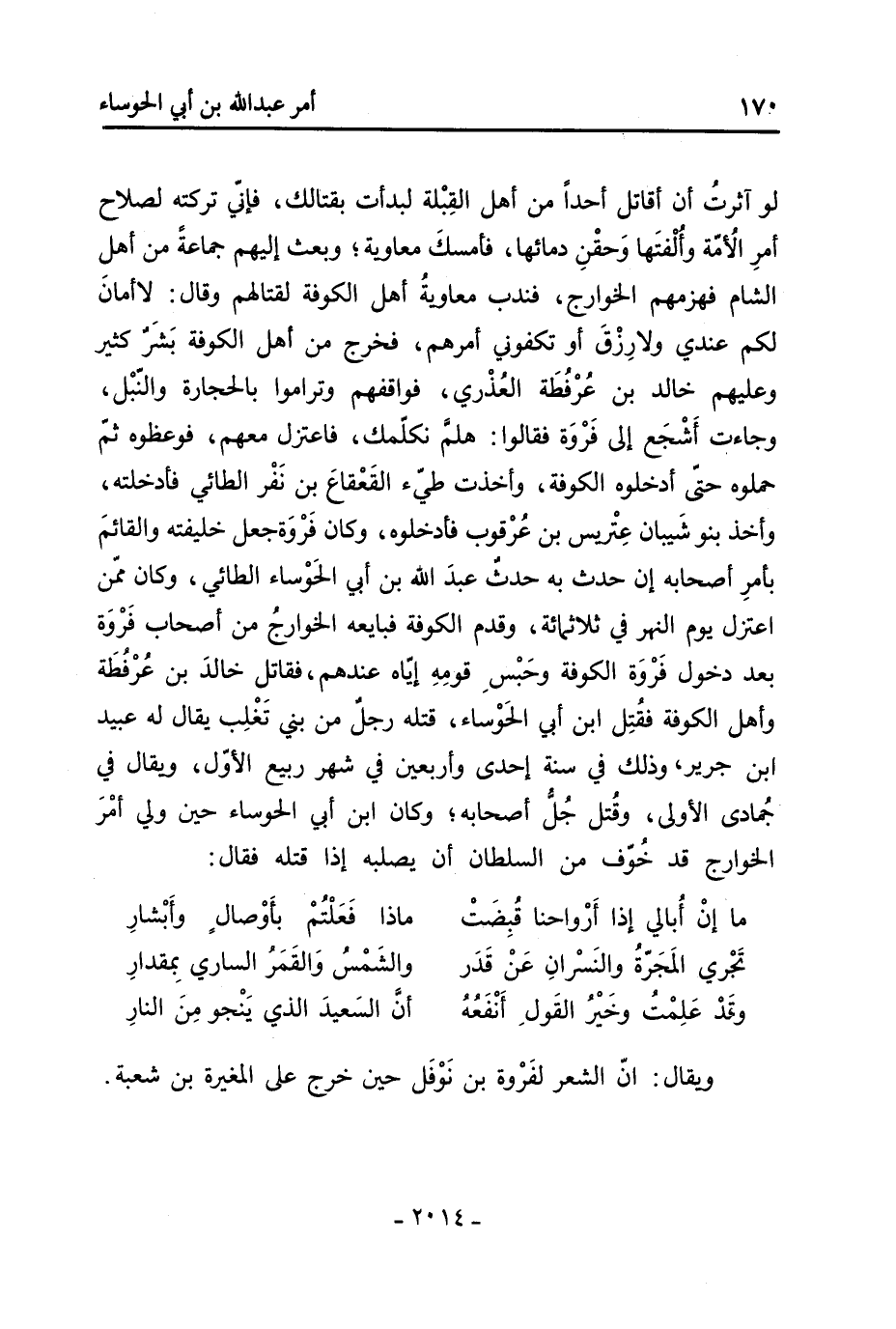 ابن عبيد بن سماك بْن الحزان- من العبور إلى المدينة العتيقة، وأمر بالجسر فقطع، وسار المستورد من الجانب الغربي حتى عبر إلى جرجرايا، ثم أتى المذار، وأقبل معقل إلى المدائن على مقدمته أبو الرّواع «1» الشاكريّ من همدان في ثلاثمائة، فالتقى أَبُو الرواع والمستورد فاقتتلا، وأبو الرواع يَقُول «2» :