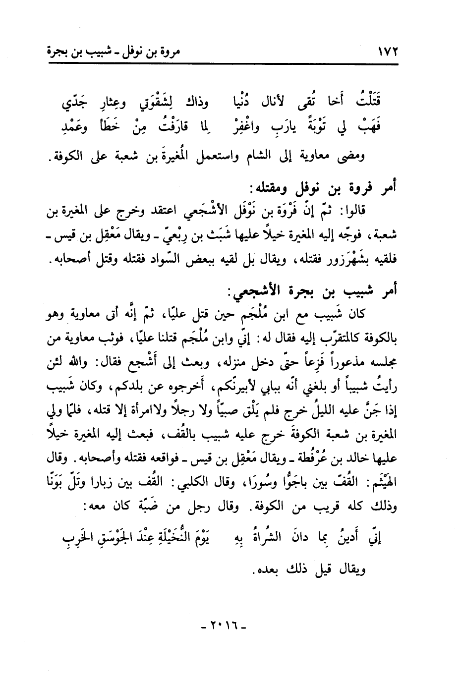461- قالوا: أخرج المغيرة معاذًا، فأشار عليه حيان بْن ظبيان أن يخرج منكرا للجور، فخرج في ثلاثمائة ببانقيا، وهي فِي حد الكوفة، فوجه إليهم المغيرة بْن شعبة أبا الرواع الهمداني ثم الشاكري وعمرو بْن محرز بْن شهاب المنقري في ألف وثلاثمائة، فقتل معاذ وأصحابه بجوخى، وقال معاذ حين دهمه الناس: إنا لقليل عددنا ولكنا نجاهد عدونا فنقتل منهم من قتلنا ثم نستشهد.