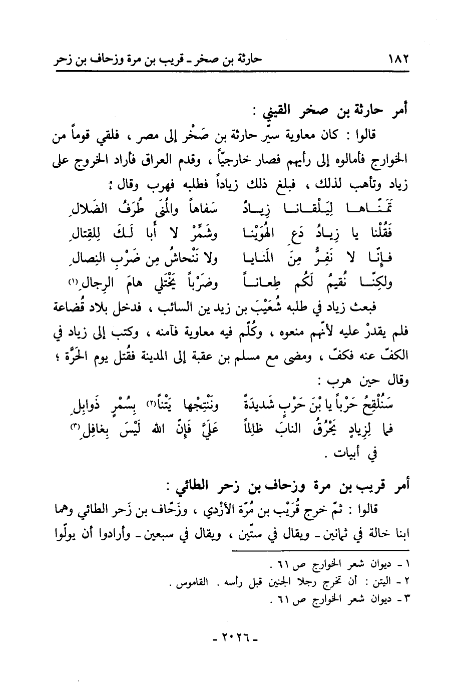 (2) قارن بالكامل: 3: 251- 252 والعقد 1: 217 وياقوت 1: 61 واليعقوبي 2: 279 وشرح النهج (نفسه) . وابن الأثير 3: 429 وفرق البغدادي: 71