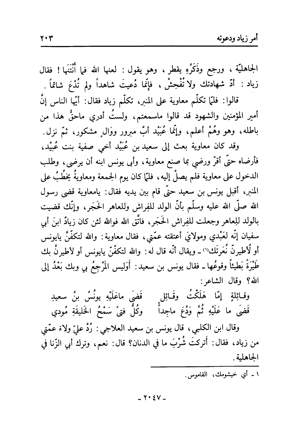 509- قَالَ: وكان حارثة بْن بدر الغداني أليفًا لزياد، فأتاه وبوجهه أثر، فَقَالَ: ما هذا؟ قَالَ: ركبت برذوني الكميت «2» فاعترم بي فسقطت، فَقَالَ: أما واللَّه لو ركبت الأشهب لسلمت.