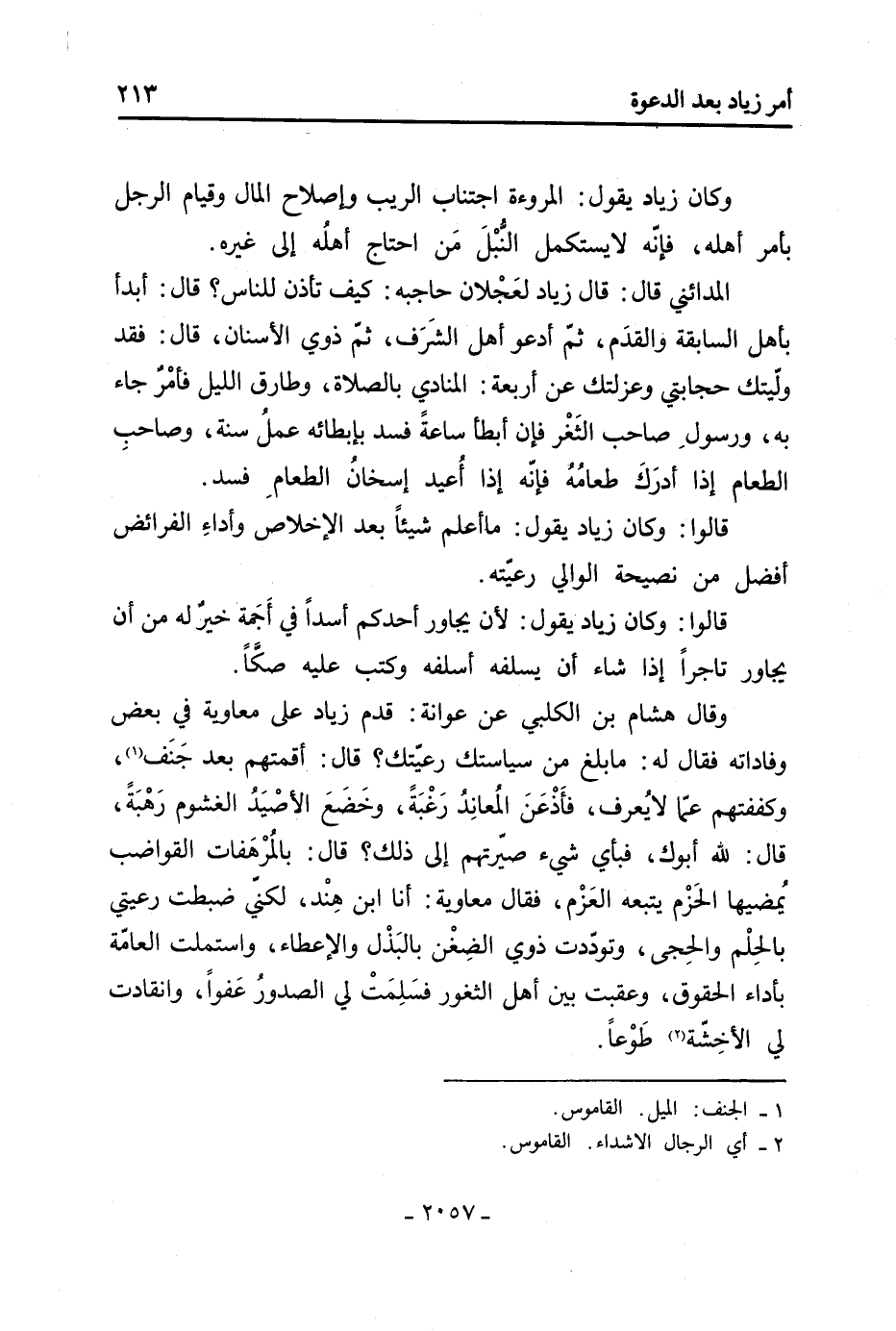 أنت رئاب فَقَالَ: لا أنا الأشهب، وهذا أخي رئاب، فَقَالَ زياد: قد بلغني عنكم أمر كرهته لكم ولمن كان مثلكم فِي موضعكم وشرفكم وجلدكم، أتدعان أن يكون حدكم على عدوكم وعدوّ الإسلام وتجعلان ذلك فِي أهل دعوتكم! فانتفوا من ذلك وجحدوه، فَقَالَ زياد لابني رميلة: قد قبلت قولكما وصدقتكما، وعرض عليهما الفريضة وضمّنهما ما يليهما، فَقَالَ الأشهب: