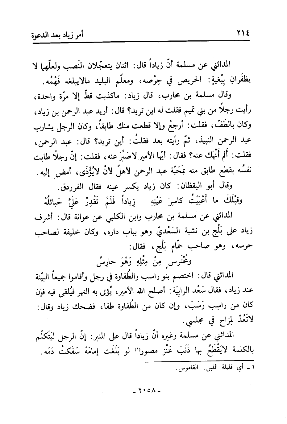 549- الْمَدَائِنِيّ قَالَ: مر رجل من الدهاقين بخمرٍ فأتي به زياد فَقَالَ: ينبغي أن يكون أراد التوصل إلي فأقدم على حمل الخمر وإدخاله البصرة بعد نهيي عَنْ ذلك، فدعا به، فأخبر أن رجلًا عقر نخلًا له، فوجه من أغرم الرجل لكل نخلة ألف درهم، وقال: إن لم يعطه هذا المال بعد ثلاث ساعات فاضربوا عنقه، فغرّم له أربعين ألف درهم، وقال لو جئتني برأسه كان أحب إلي من المال.